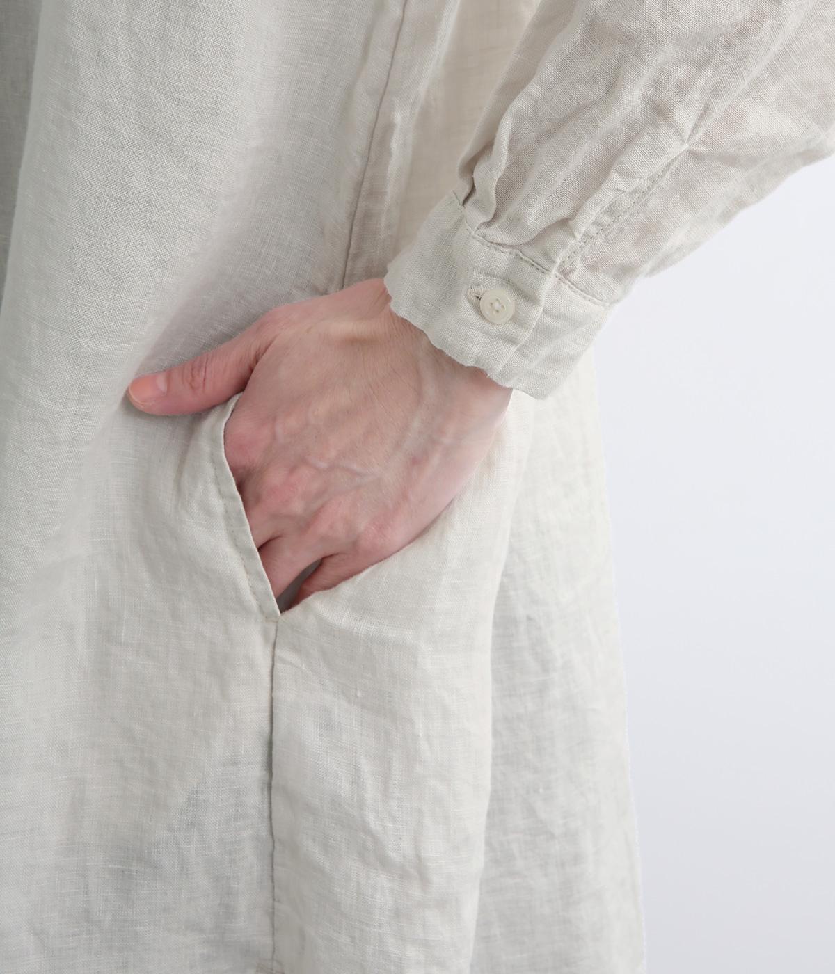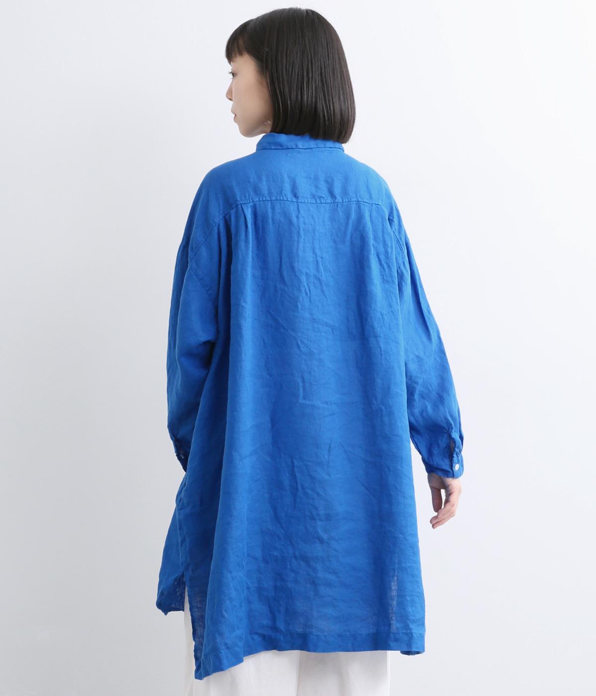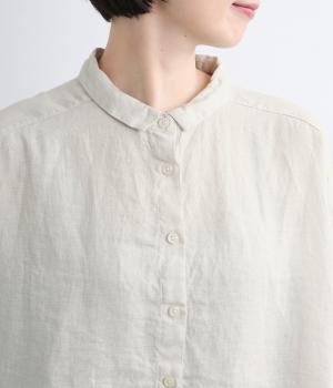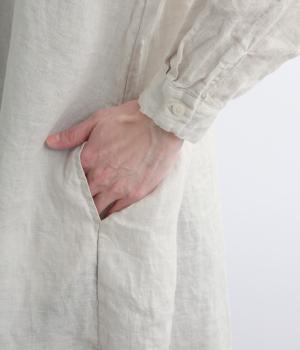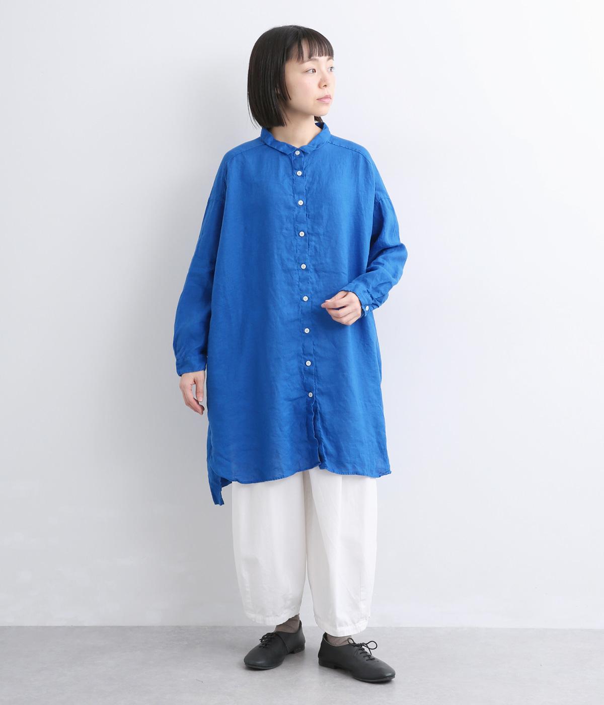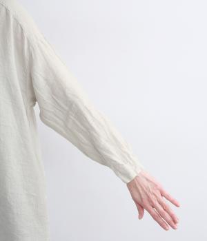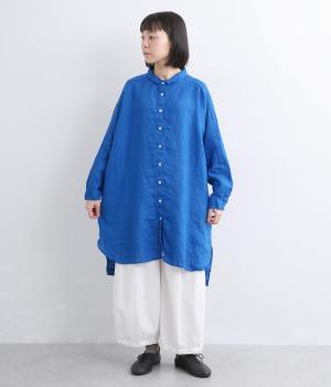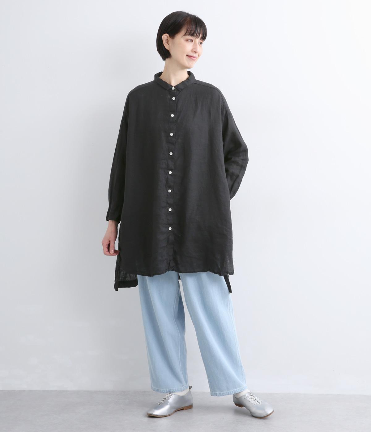 生地の風合いをいかしたシンプルなチュニックです。小さめの襟がさりげないきちんと感をプラス。腰まわりをカバーする着丈でリラックスした着心地に仕上げました。緩やかに曲線を描くヘムラインが優雅な印象を添えます。