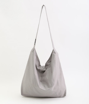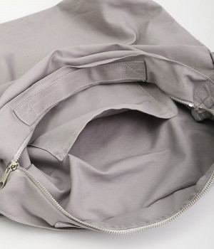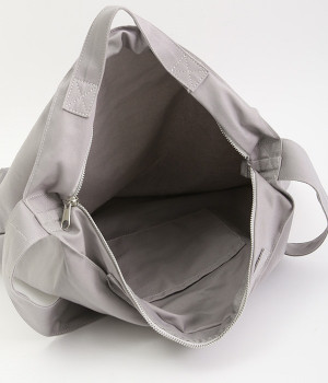 大容量のショルダートートバッグです。斜め掛けで持ち運びもしやすく、持ち手もついているので手持ちでも使用できます。荷物の出し入れがしやすい、開け口はファスナー開き仕様。
