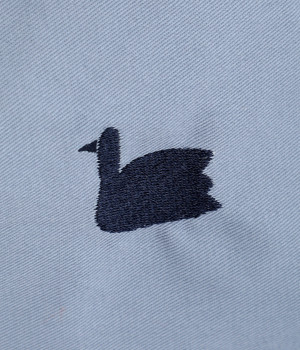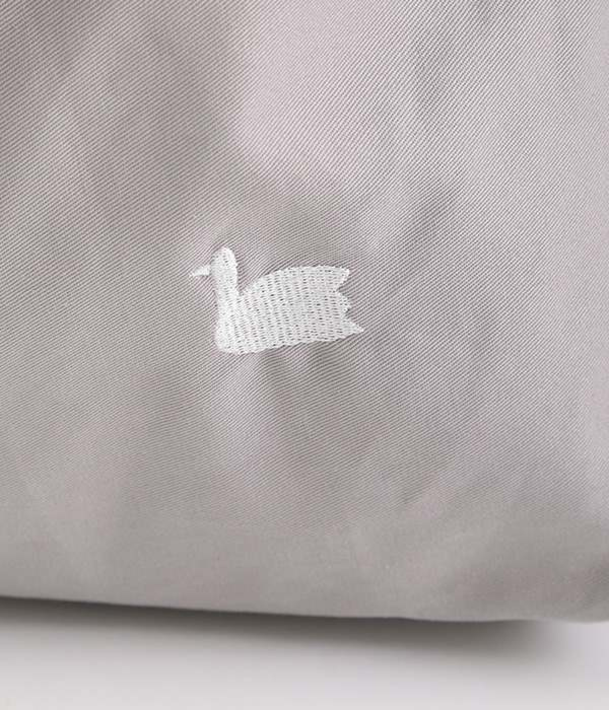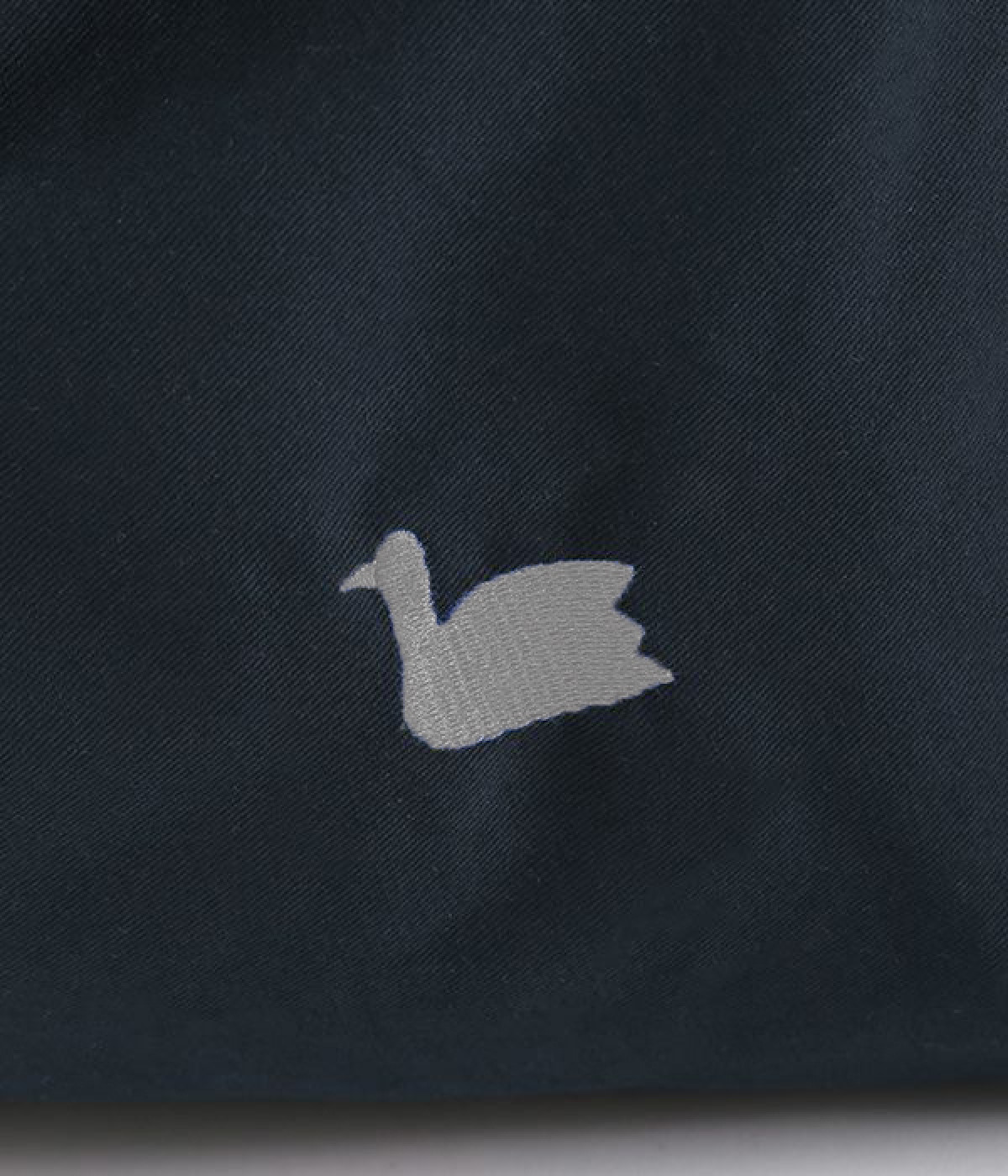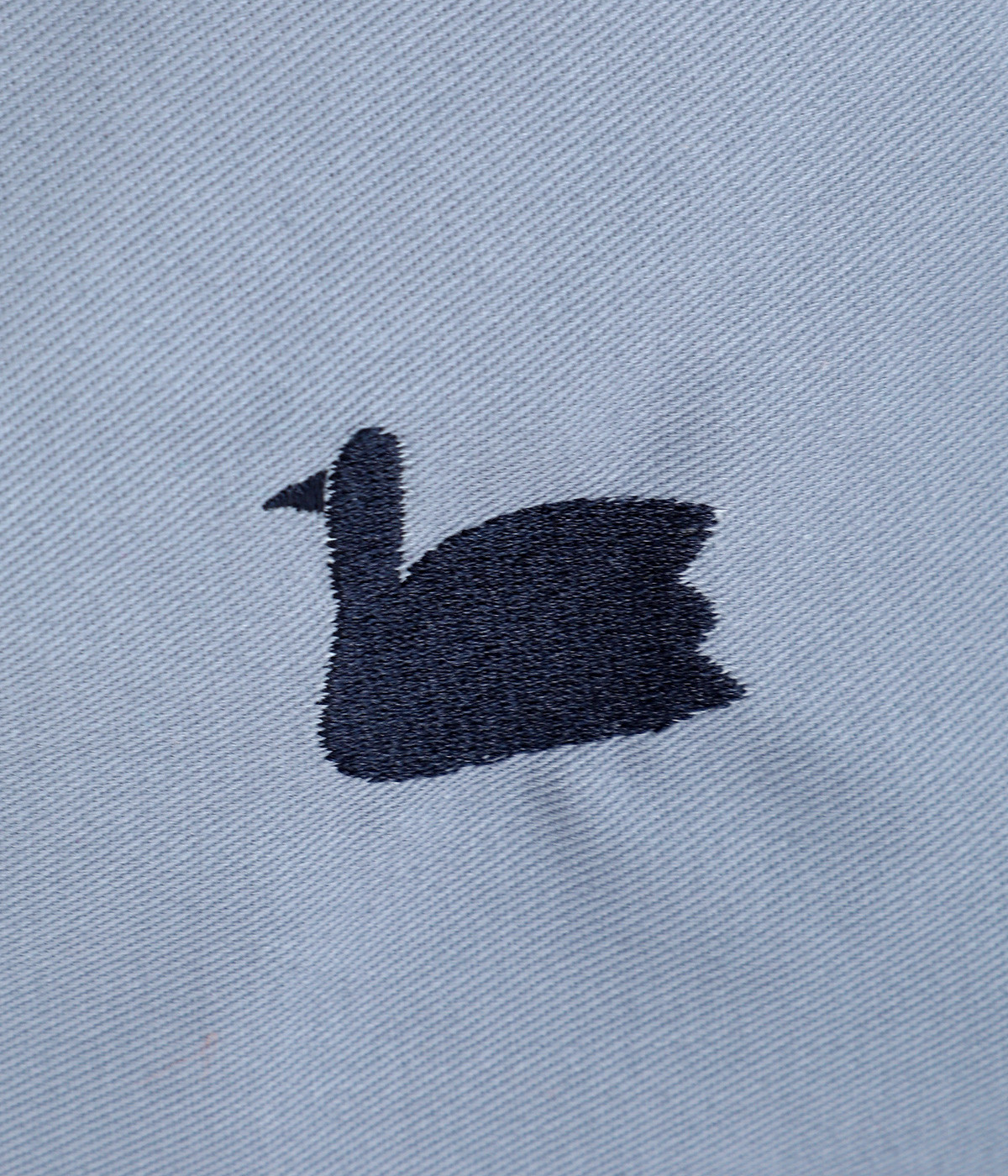 しっかりとした質感のコットンツイル生地で仕立てました。ブランドのアイコンである白鳥の刺しゅうがワンポイントに。