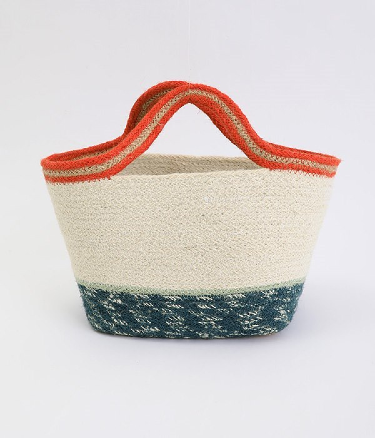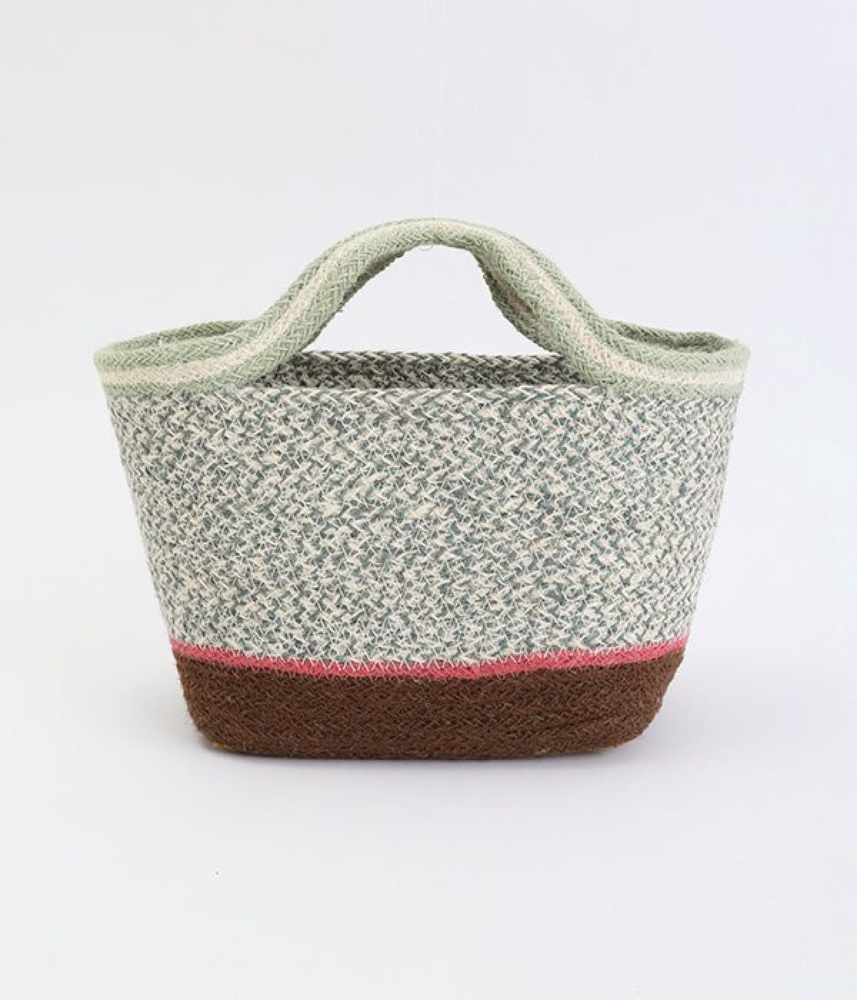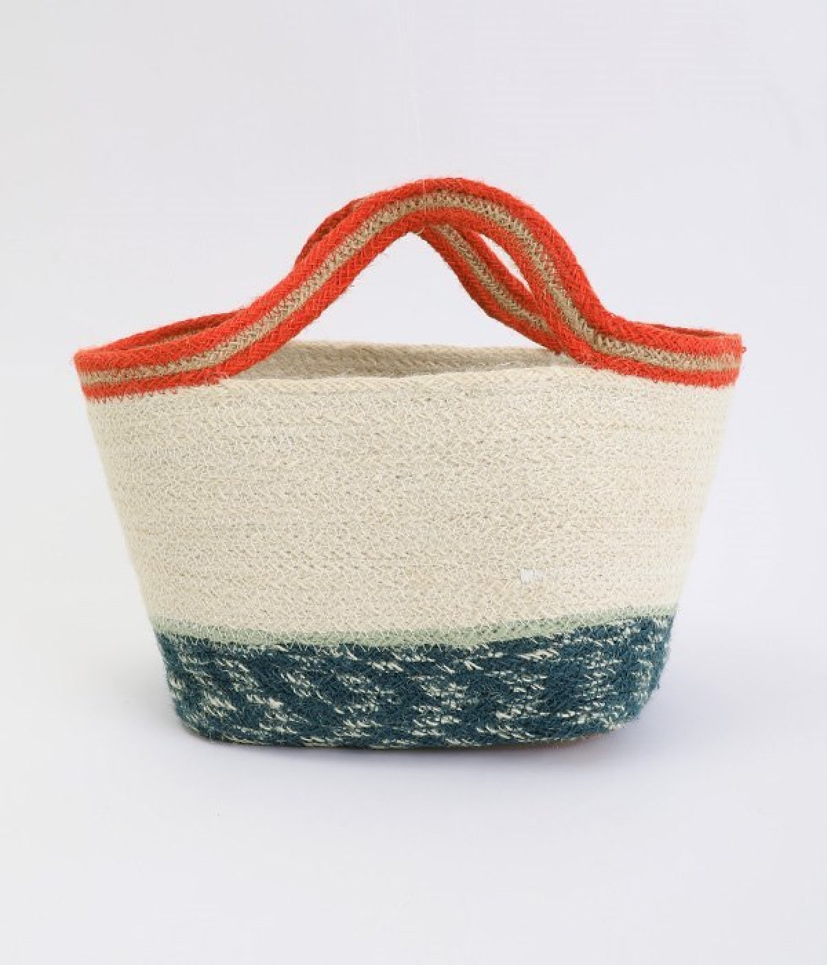 ジュートと水草で編んだ天然素材のバスケット。色味や質感、サイズなど、一点ずつ違った表情を見せるハンドクラフトの味わい深さが魅力です。コンパクトサイズでかわいらしく、絶妙な色使いがコーディネートの華やぎのあるアクセントに。底マチがあるので荷物を整理して収納でき、見た目のわりにたっぷり入る使い勝手のよさも好ポイント。軽くて丈夫な素材はデイリーユースに活躍します。