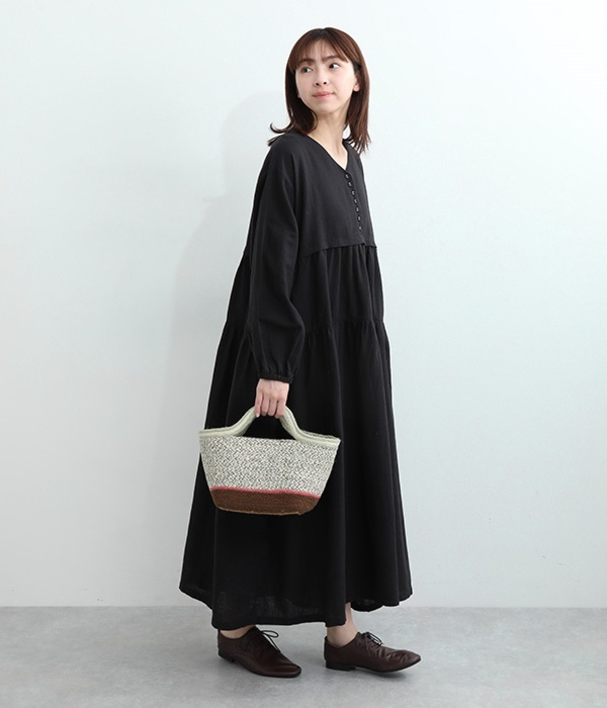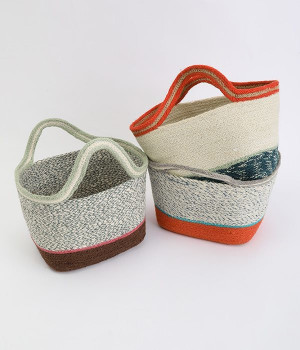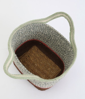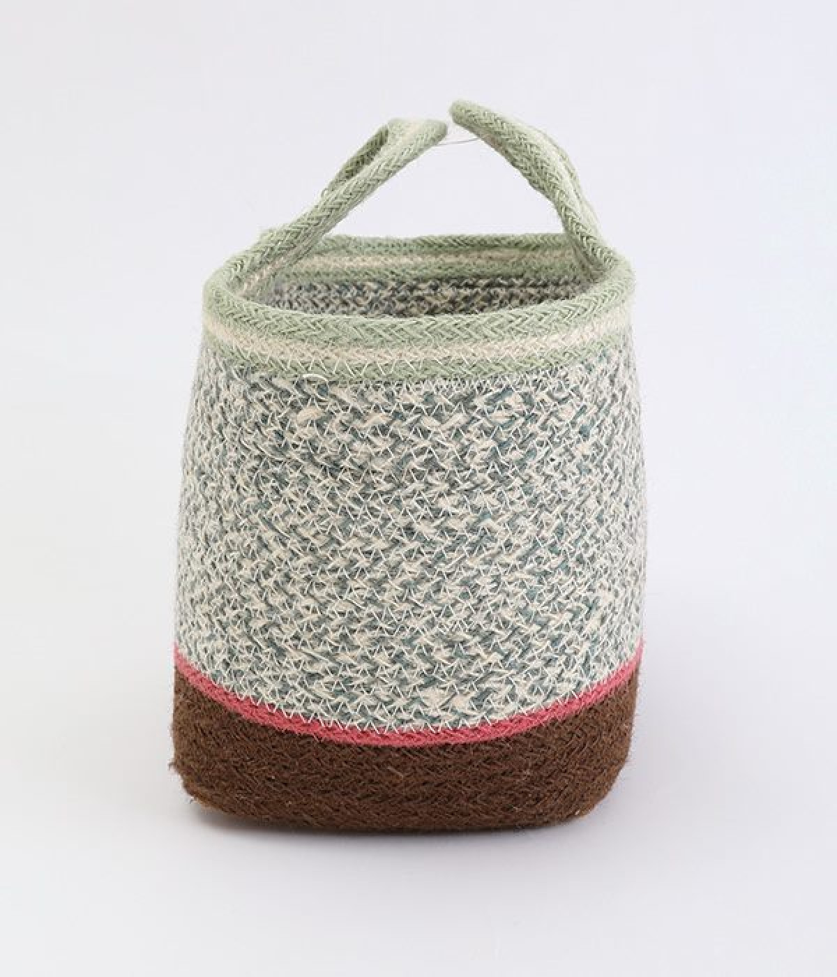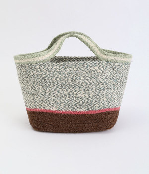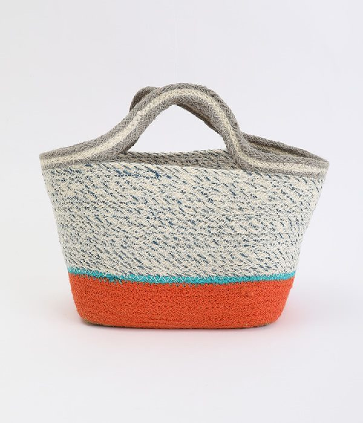ジュートと水草で編んだ天然素材のバスケット。色味や質感、サイズなど、一点ずつ違った表情を見せるハンドクラフトの味わい深さが魅力です。コンパクトサイズでかわいらしく、絶妙な色使いがコーディネートの華やぎのあるアクセントに。底マチがあるので荷物を整理して収納でき、見た目のわりにたっぷり入る使い勝手のよさも好ポイント。軽くて丈夫な素材はデイリーユースに活躍します。