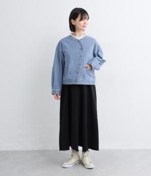 硬さの少ないコットンデニム生地を使用しています。ほどよい厚みとハリ感があり、シルエットをきれいに保ってくれます。着るほどに肌に馴染んでいく風合いも楽しめます。