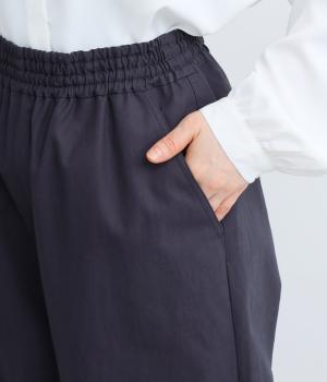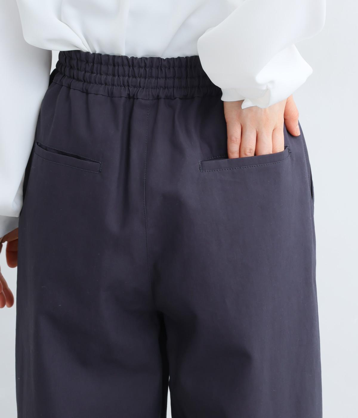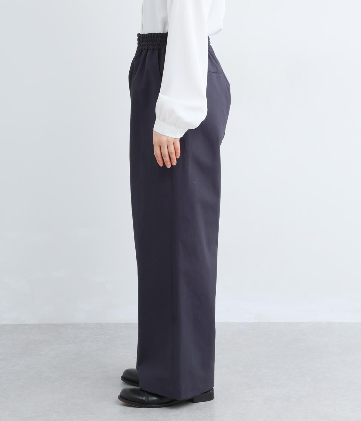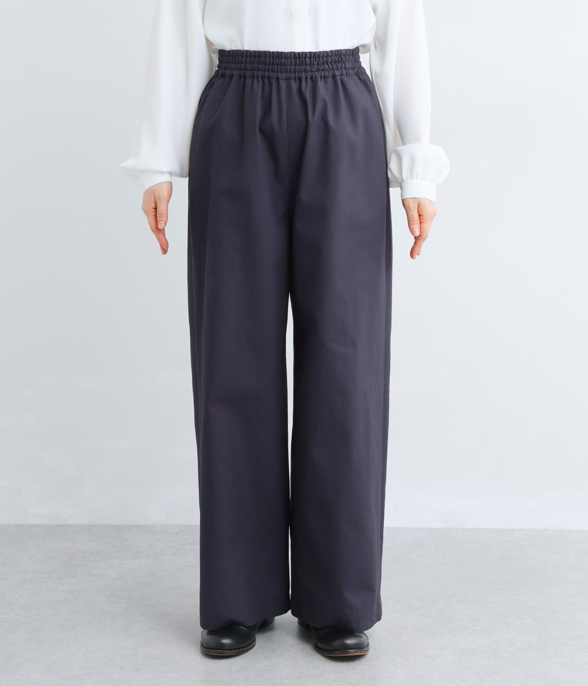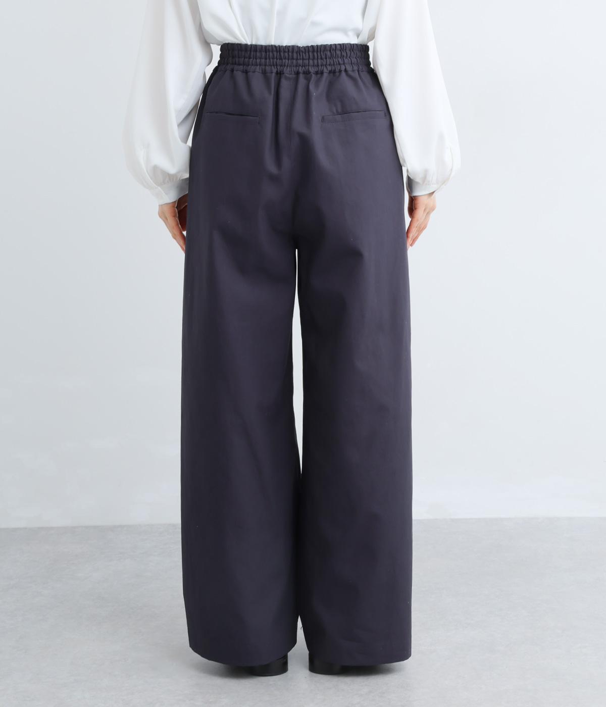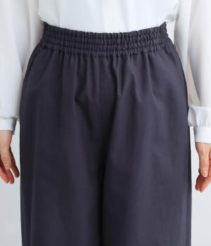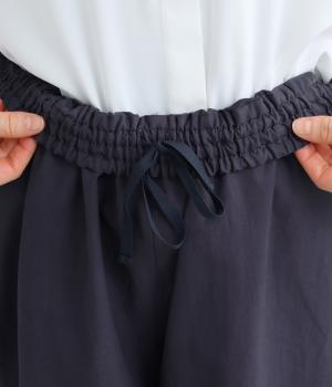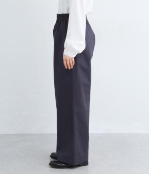 体のラインを拾いにくいワイドパンツです。品のある素材感できれいめなスタイリングはもちろん、カジュアルなアイテムとも好相性。さまざまな着こなしが楽しめます。ウエストは総ゴム仕様で、内紐でサイズ調節が可能です。