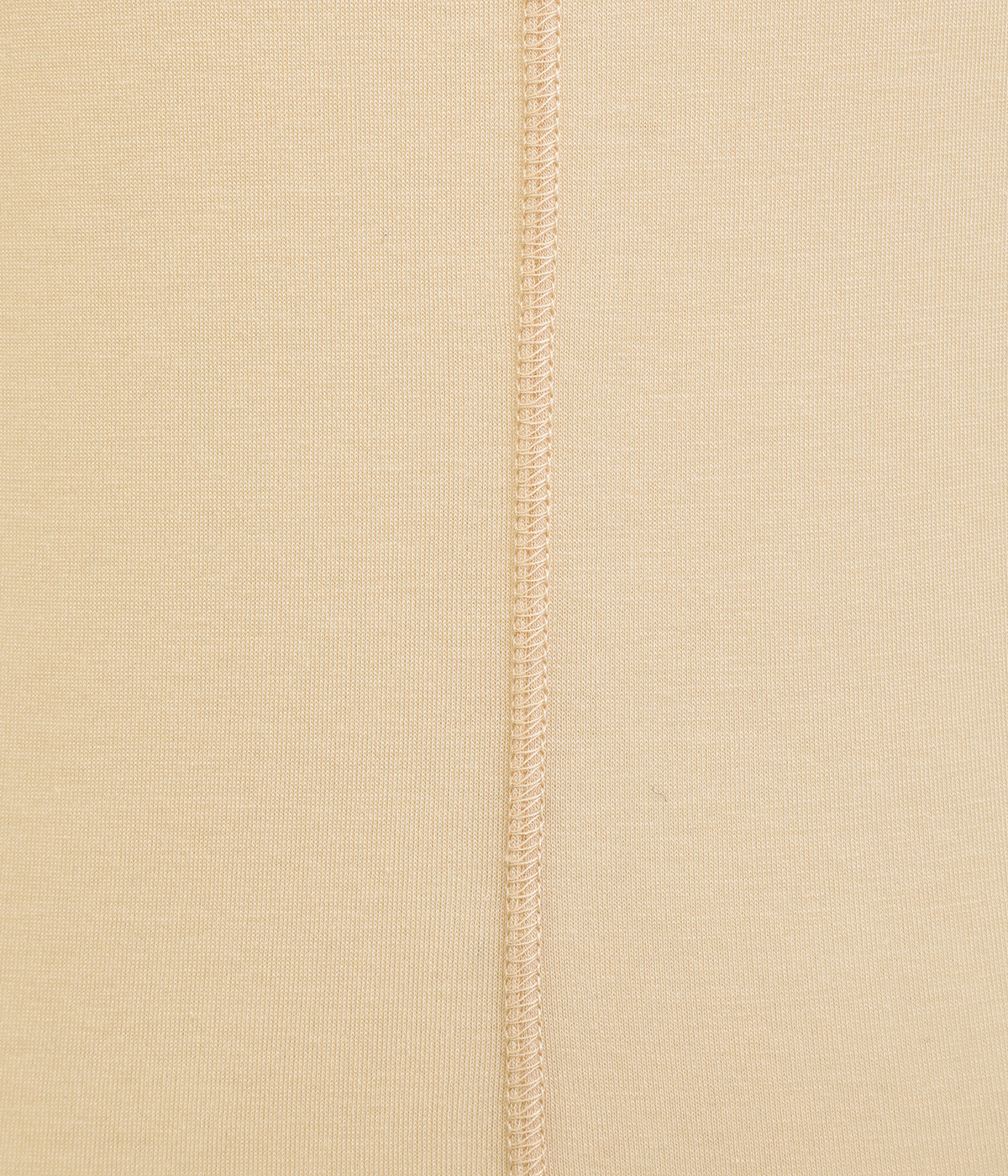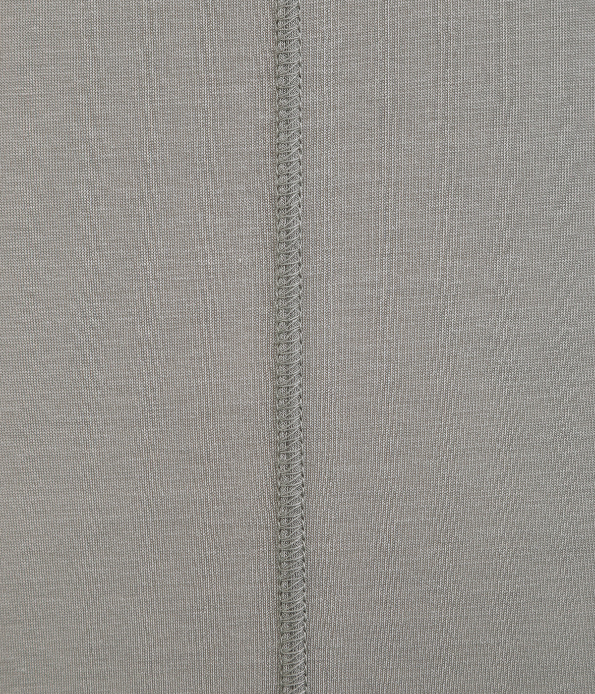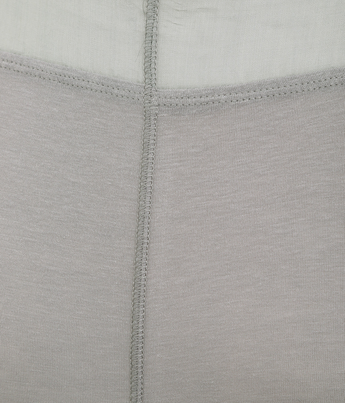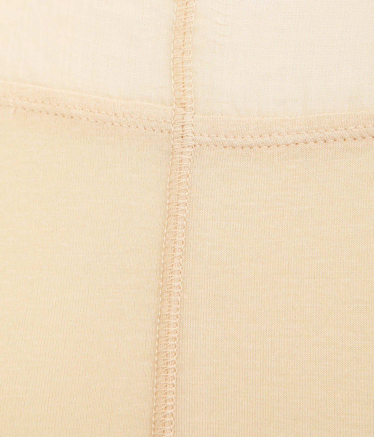 伸縮性に優れていて心地よくフィットするテンセルコットンのベア天竺を採用。上部は細番手の糸を用いたラミーローン布帛に切り替え、上品なシアー感のある大人カジュアルにおすすめな素材です。