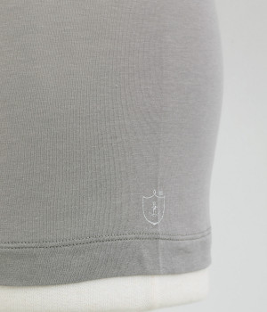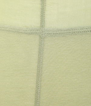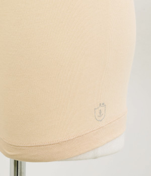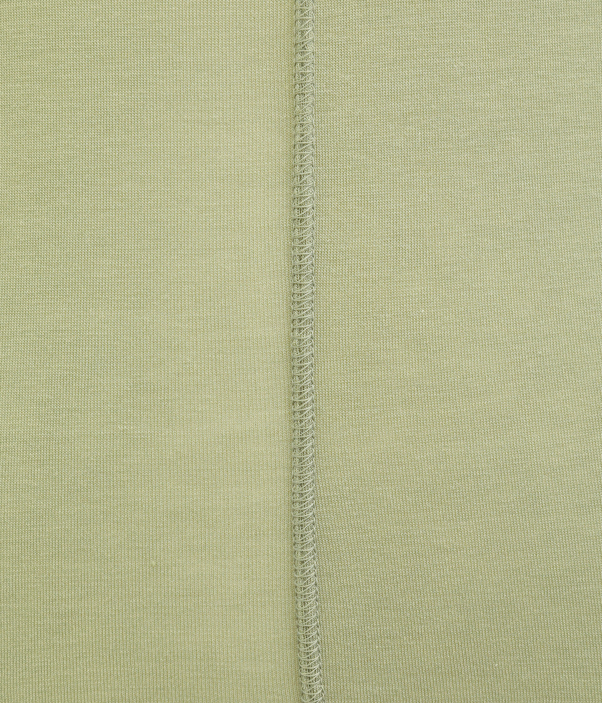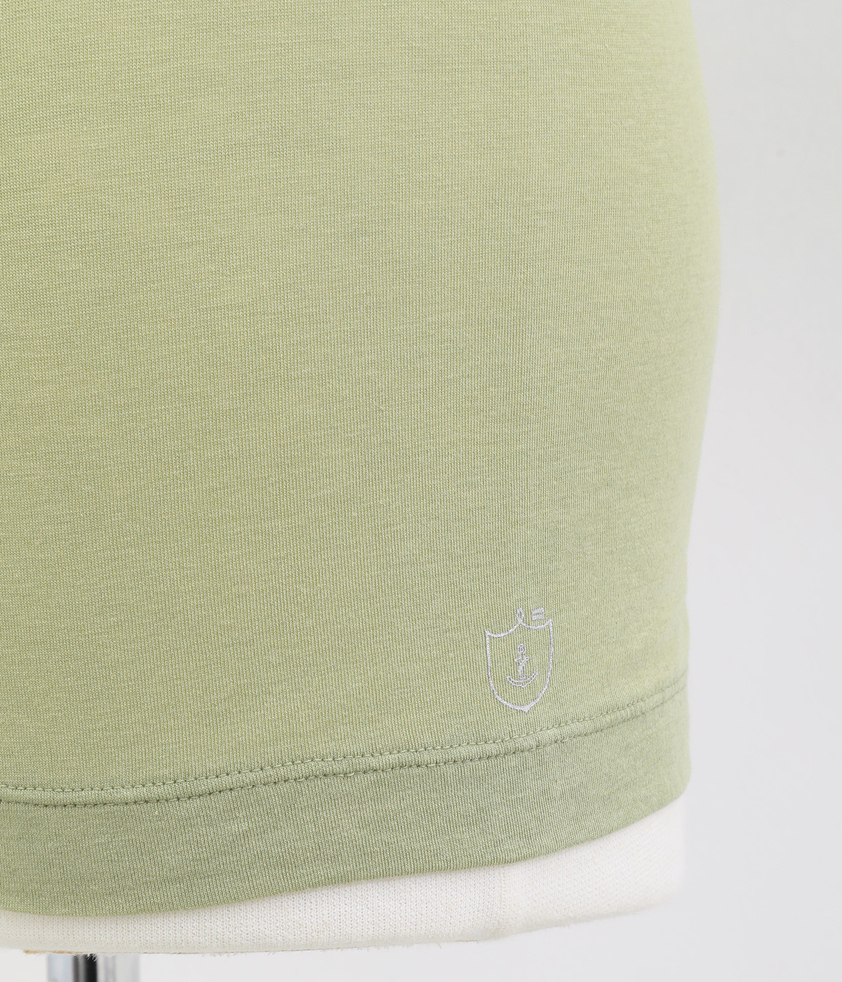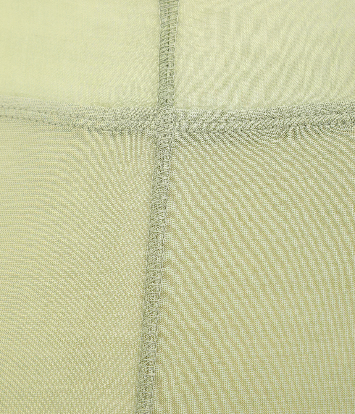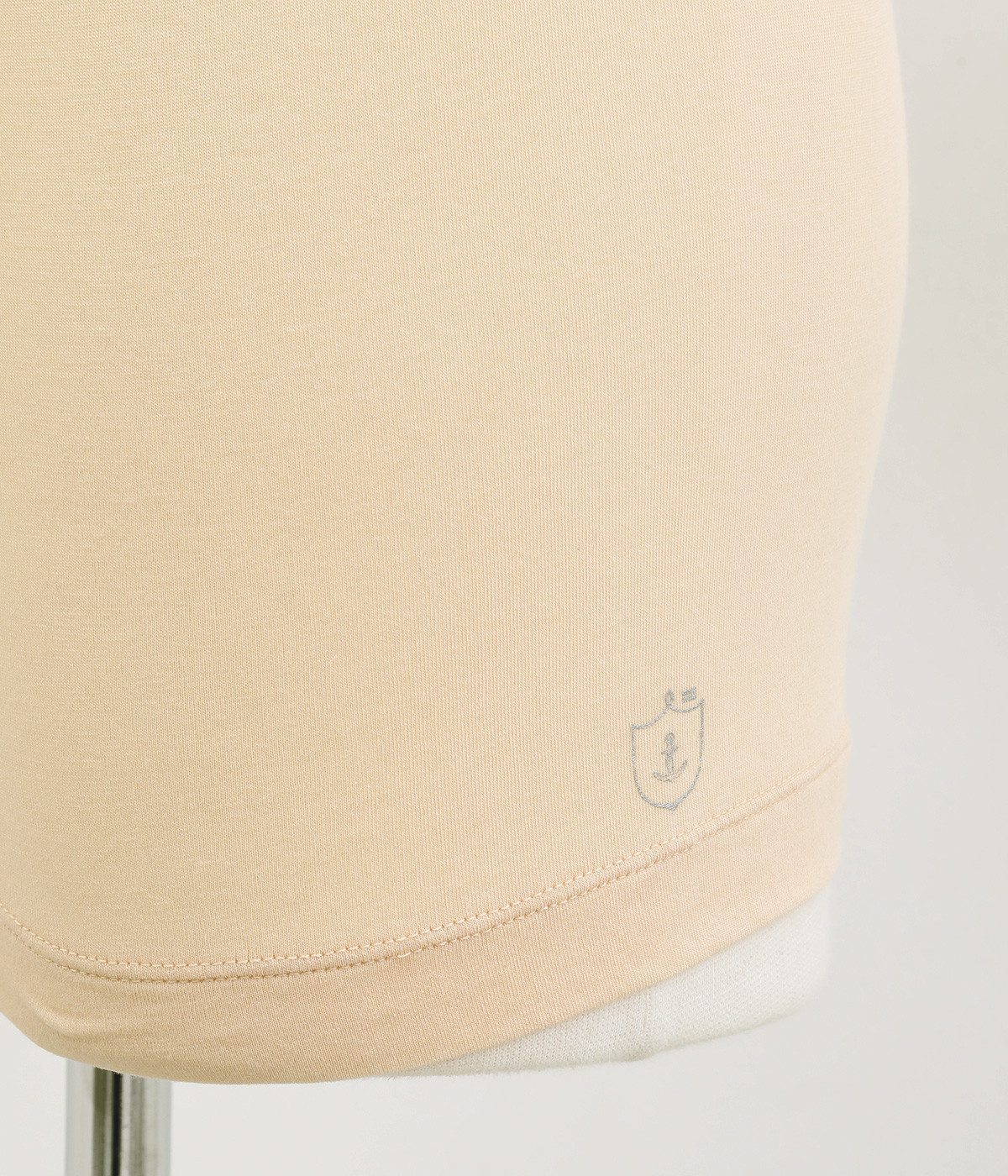 伸縮性に優れていて心地よくフィットするテンセルコットンのベア天竺を採用。上部は細番手の糸を用いたラミーローン布帛に切り替え、上品なシアー感のある大人カジュアルにおすすめな素材です。
