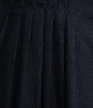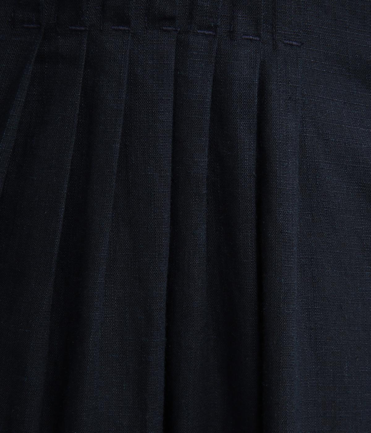 ナチュラルなリネンとしなやかなレーヨンを組み合わせた混紡生地を使用しています。リネン特有のスラブ感と、レーヨンのやさしい光沢と落ち感が魅力で、ふだん使いもきれいめスタイルにもなじみます。