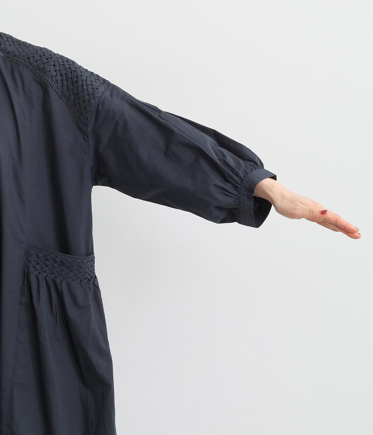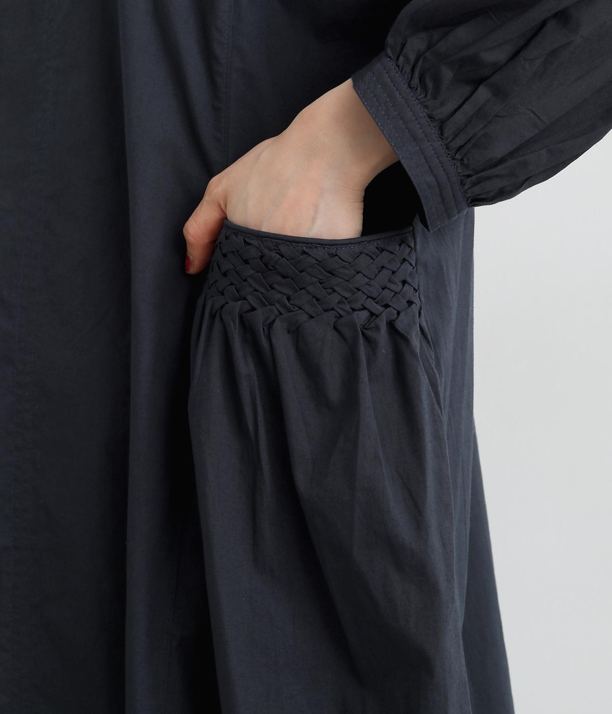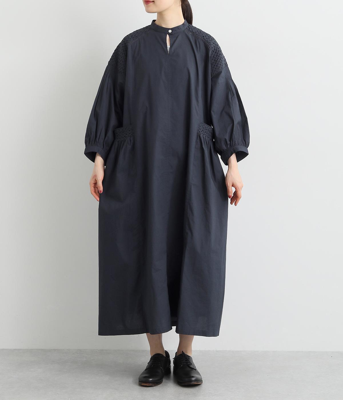 肩とポケットにあしらったスモッキング刺しゅうがさりげなく華やかさを添えるワンピース。前ネックの涙開きデザインがフェミニンな抜け感を与えます。体のラインを拾いにくいゆったりとしたシルエットが◎。腰まわりをカバーする、立体感のあるポケットもポイントです。