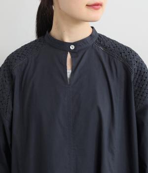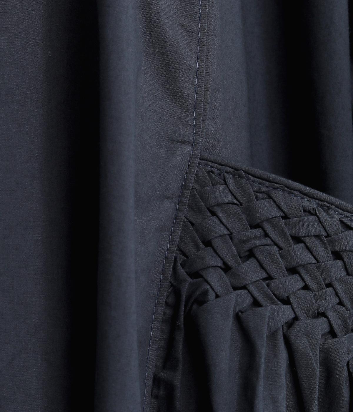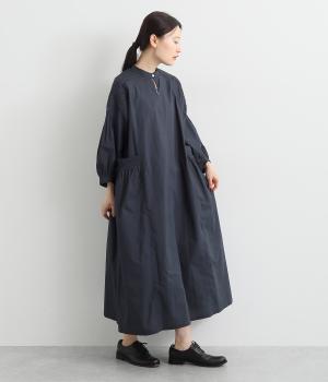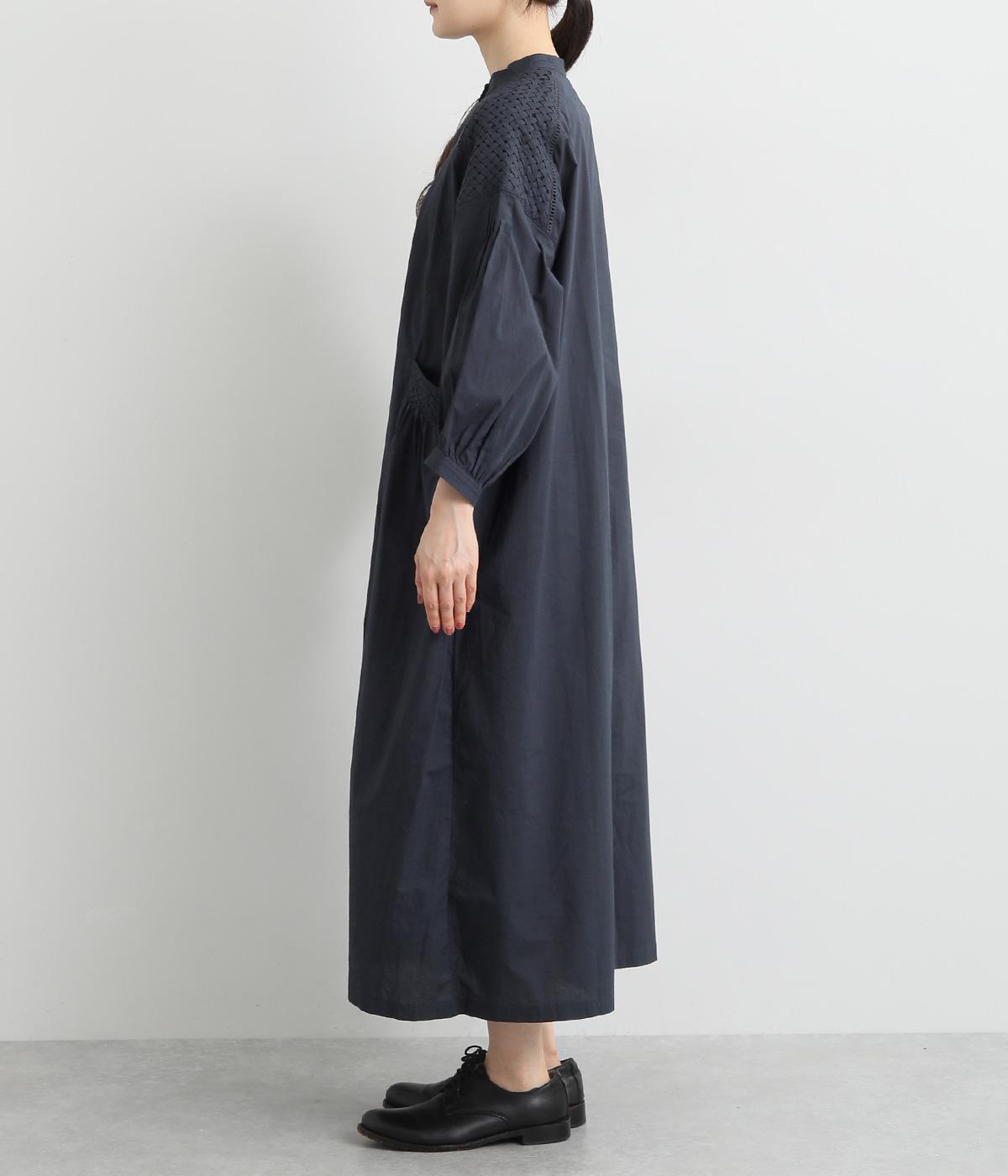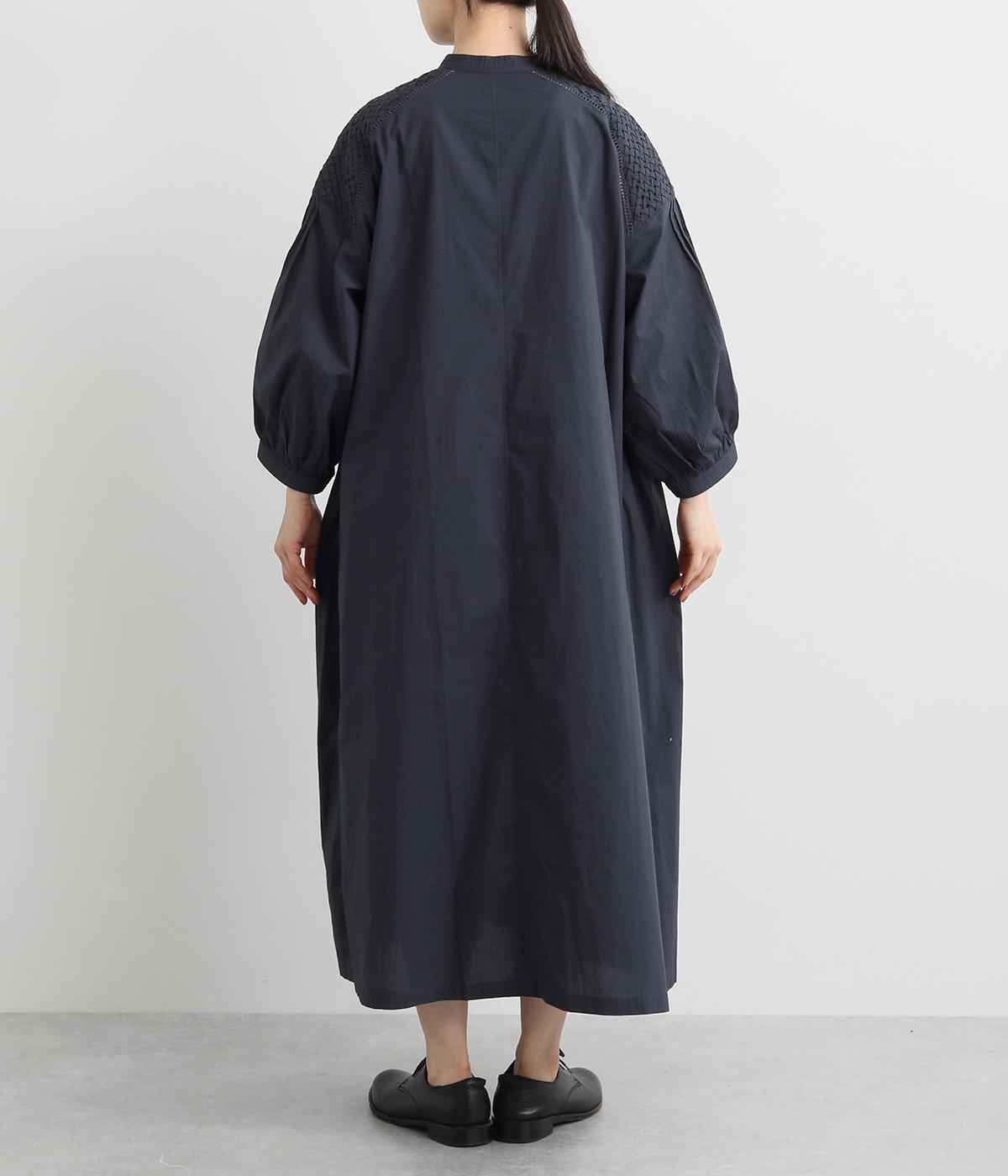肩とポケットにあしらったスモッキング刺しゅうがさりげなく華やかさを添えるワンピース。前ネックの涙開きデザインがフェミニンな抜け感を与えます。体のラインを拾いにくいゆったりとしたシルエットが◎。腰まわりをカバーする、立体感のあるポケットもポイントです。