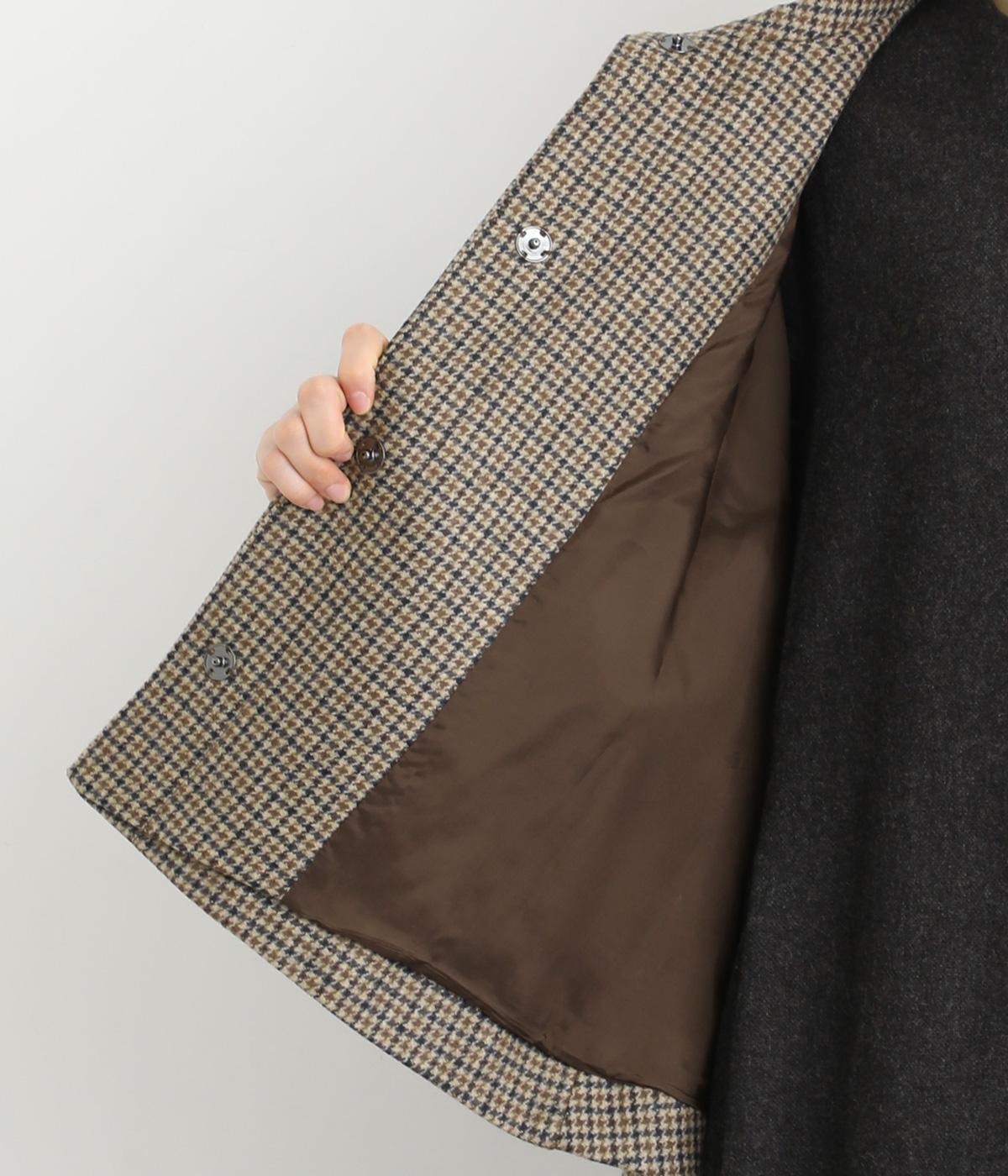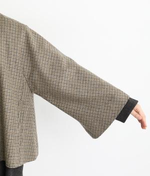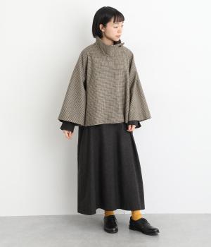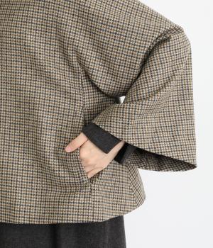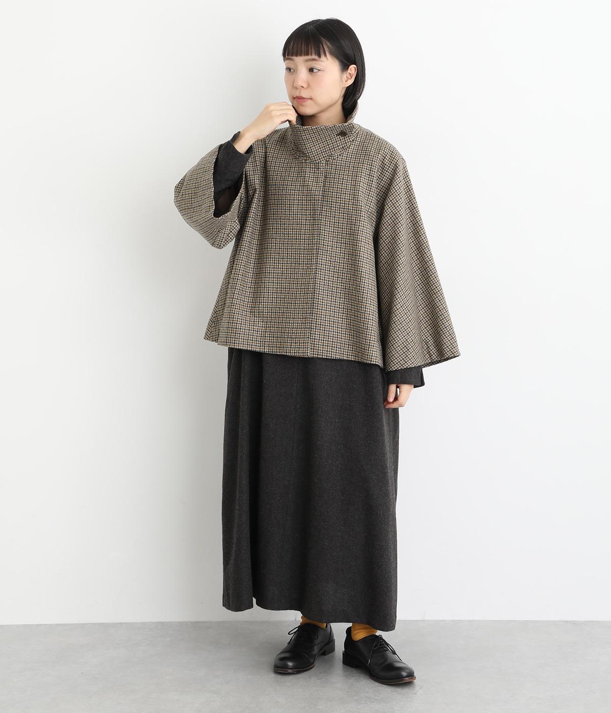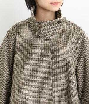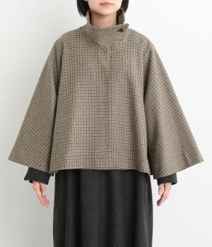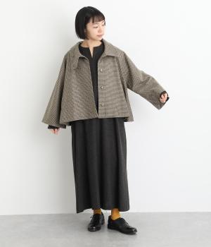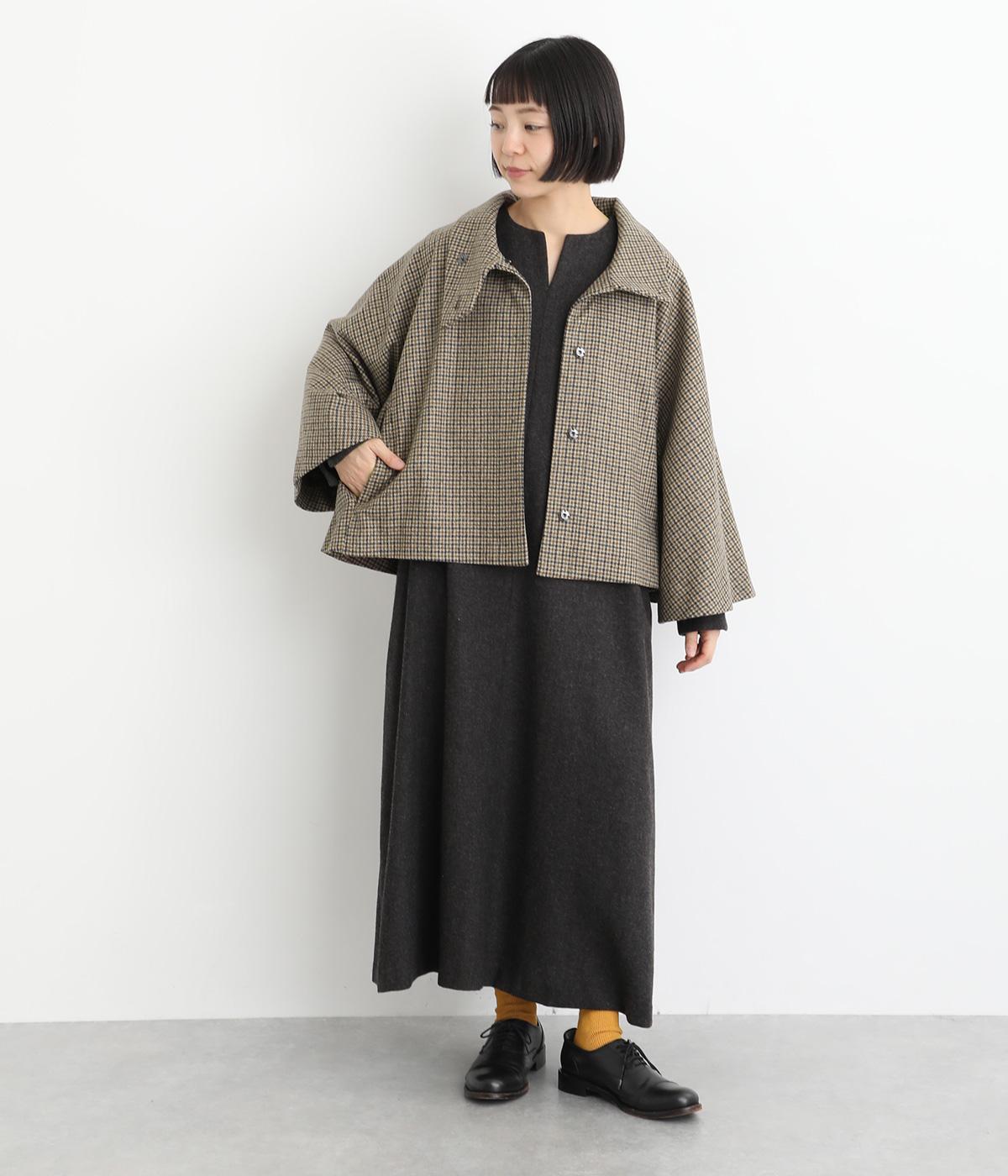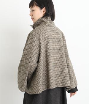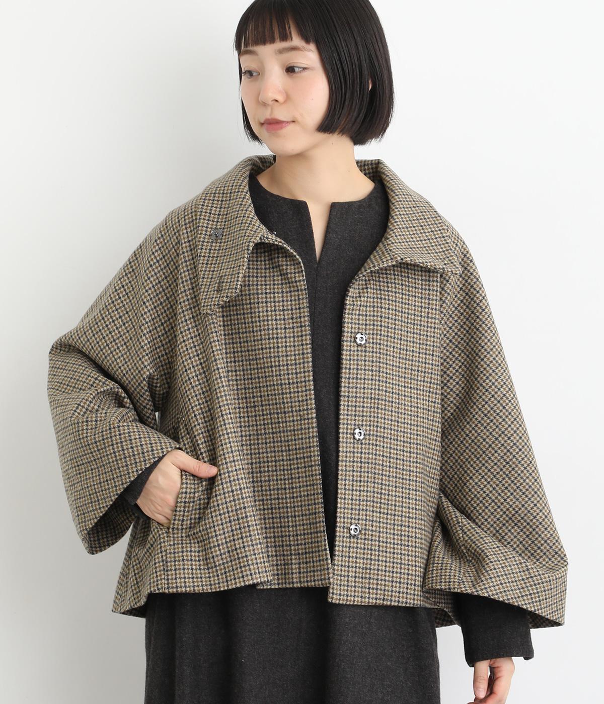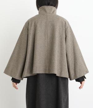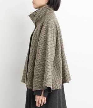 テントラインの広がりがきれいな、Aラインシルエットのショートコートです。体のラインをカバーし、ふんわり軽やかに着こなせます。高めのスタンドカラーは、とめればクラシックに、あければ抜け感のある印象に。八分丈のフレアスリーブなので、インナーをちらりとのぞかせれば、コーディネートのアクセントにもなります。