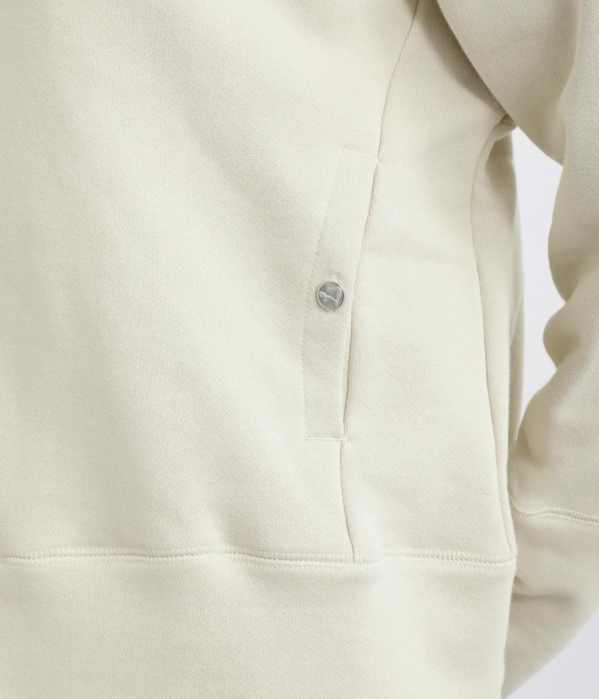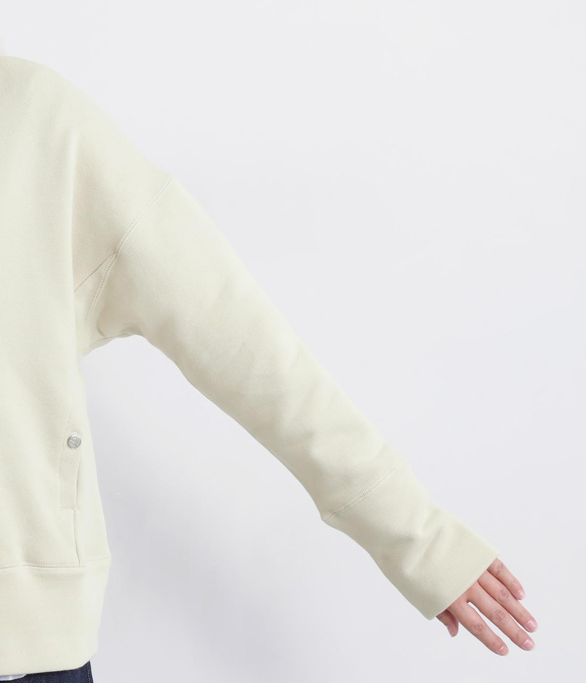 希少な旧式編み機「アズマ編み機」を使用した綿の裏毛生地を採用。ふっくらとやわらかな風合いが特徴的で、生地感はしっかりしていてカジュアルに着こなせます。