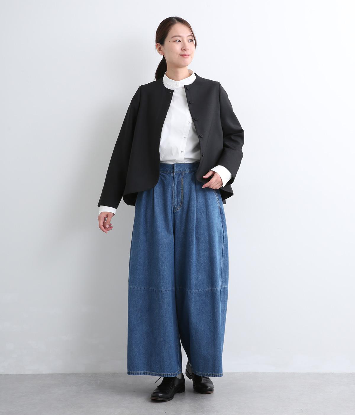オフはタイプライターのようなハリ感が心地よく、デニムは着用初期からやわらかで経年変化もたのしめます。どちらも薄めのコットン中厚手生地で快適に着まわせます。