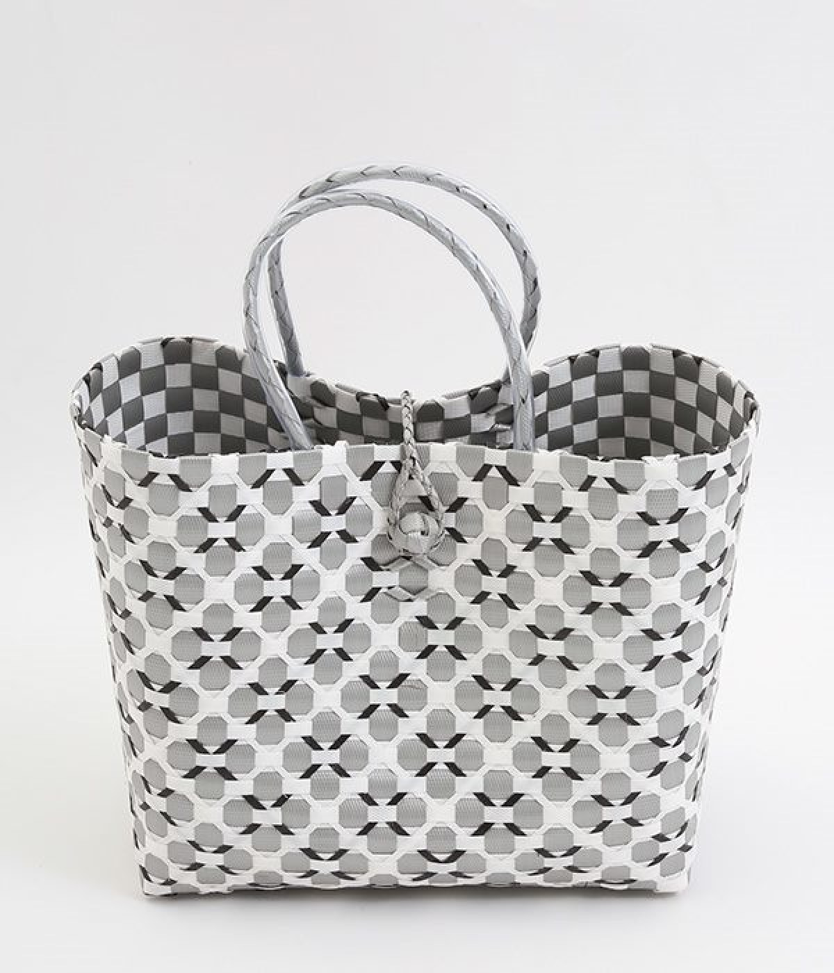 PPバンドを編み上げた、軽やかな質感のバッグです。「バサール」とはインドネシアの言葉で「市場」という意味で、お買い物バッグとして親しまれています。シンプルな色使いでまとめ、普段使いしやすいよう仕上げました。開閉部にボタンもつけ、中身が見えにくい構造に。しっかりした質感で丈夫さも魅力です。普段のお出かけからお買い物、使わない時にはインテリアとしてもどうぞ。