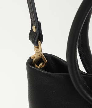 ナチュラン11周年記念商品です。柔らかでツヤ感の美しい姫路レザーを使ったバケツバッグです。丸い持ち手が女性らしさをプラスしてくれるデザイン。長財布、ポーチ、500mlのペットボトルなどが入るサイズで、肩がけも可能なショルダー付きなのでデイリーユースにおすすめです。開口部はマグネットボタン仕様。ドットの型押しはナチュラン先行のweb限定アイテムです。