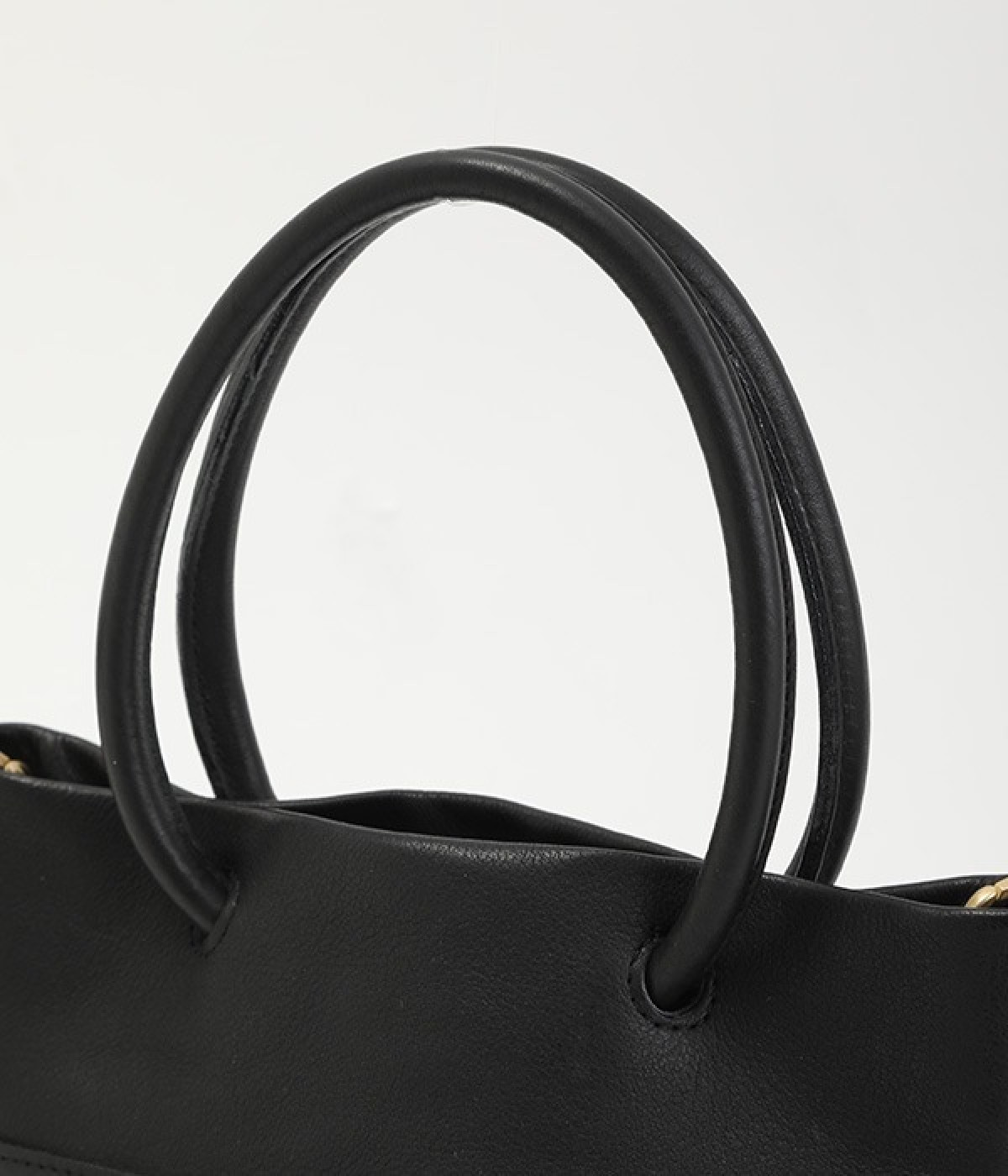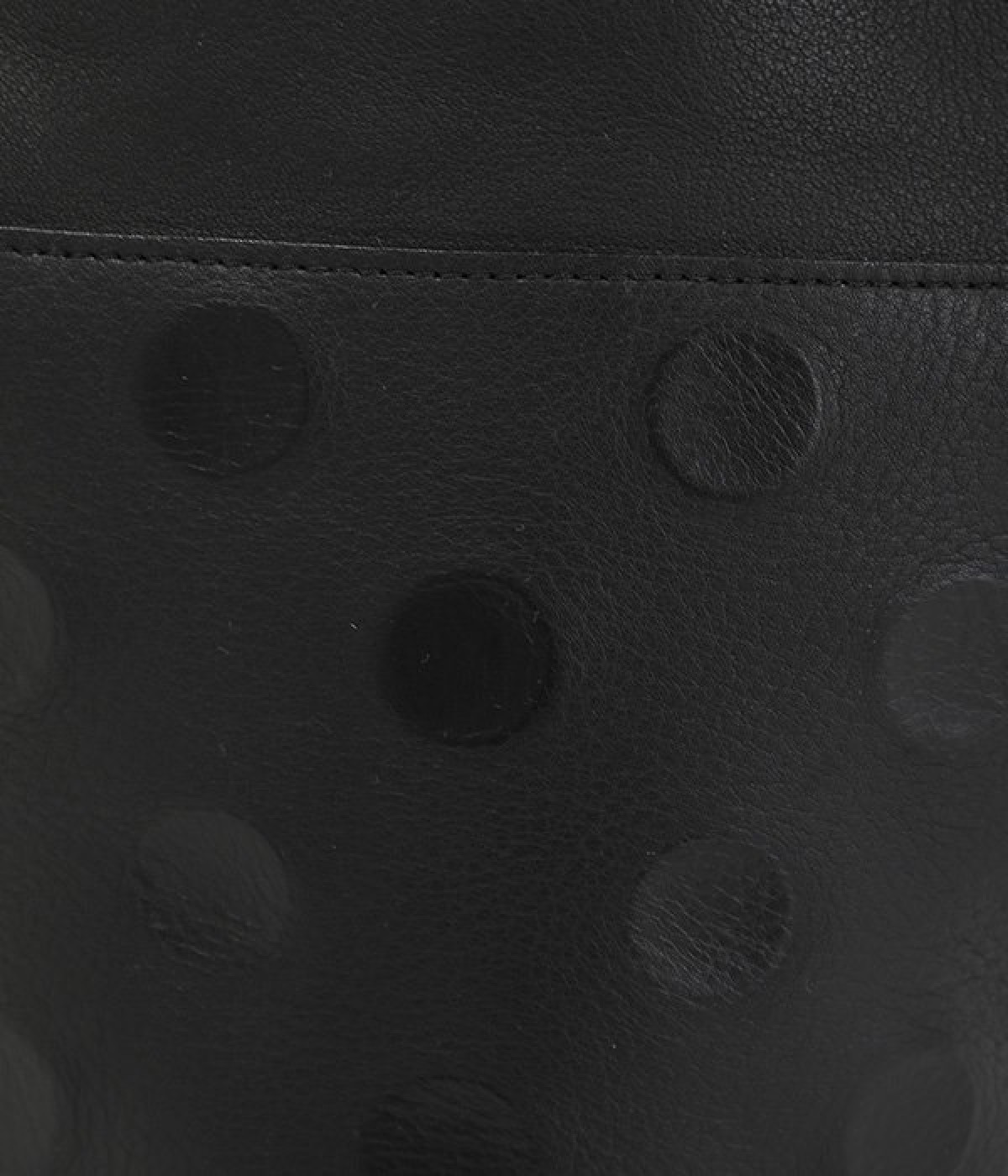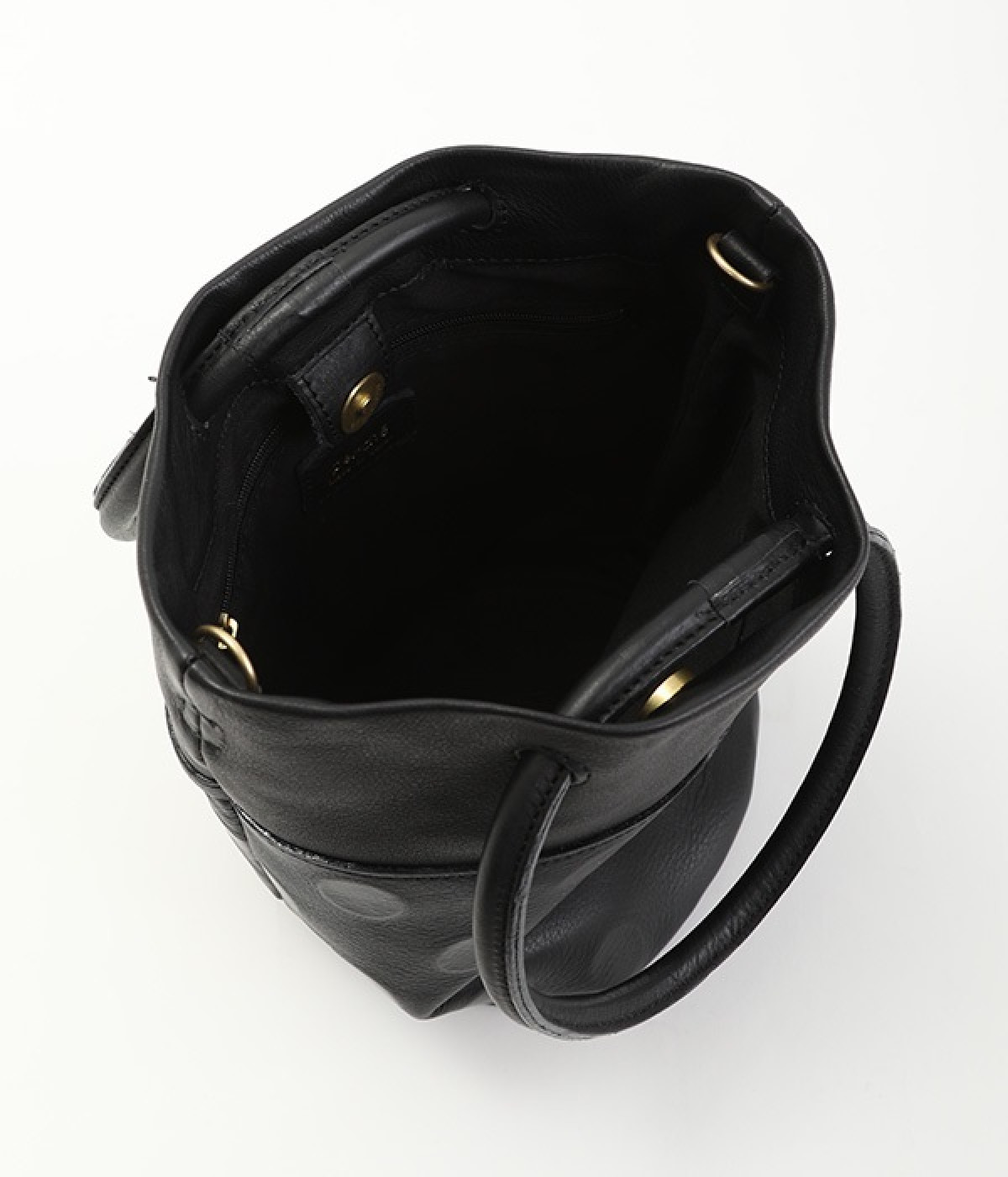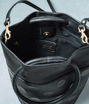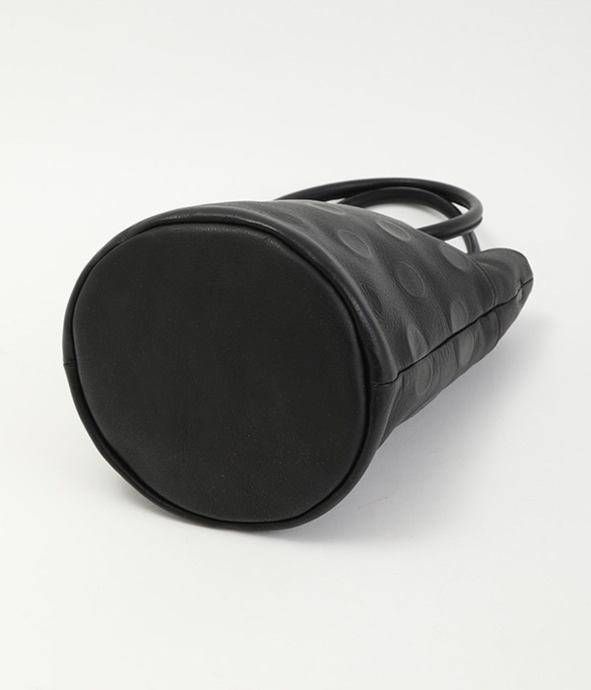 ナチュラン11周年記念商品です。柔らかでツヤ感の美しい姫路レザーを使ったバケツバッグです。丸い持ち手が女性らしさをプラスしてくれるデザイン。長財布、ポーチ、500mlのペットボトルなどが入るサイズで、肩がけも可能なショルダー付きなのでデイリーユースにおすすめです。開口部はマグネットボタン仕様。ドットの型押しはナチュラン先行のweb限定アイテムです。