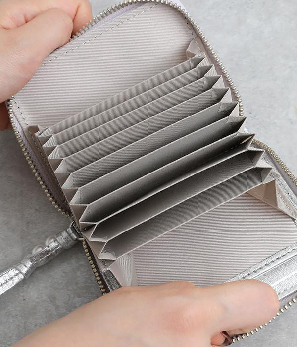 ユニセックスで使えるイタリアンレザーがポイントのジャバラ式財布です。カード、お札、小銭、全部をコンパクトに収納する、長財布とミニ財布の良いところを掛け合わせた大容量のアイテム。ミニショルダーやサコッシュ、ハンドバッグ、ポケットにも入るサイズです。本体にスキミング防止シートが内蔵されておりスキミング被害を防止します。