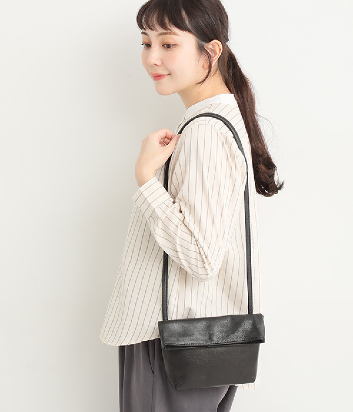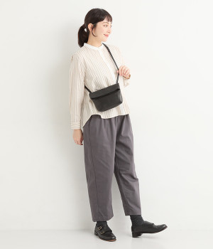 ミニ財布やスマートフォンが収まるコンパクトサイズ