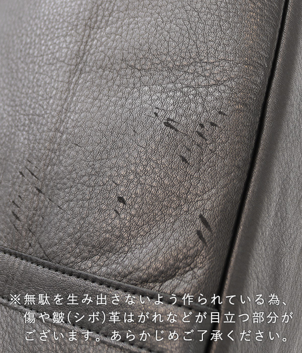 ご理解いただき革らしい風合いや感触をお楽しみください。