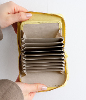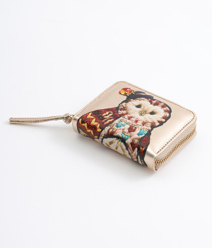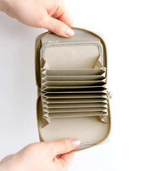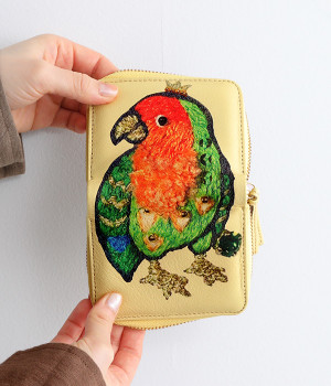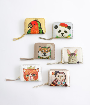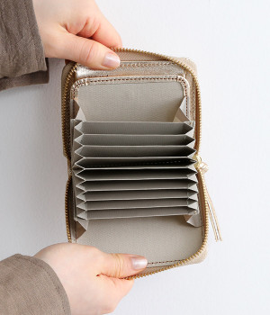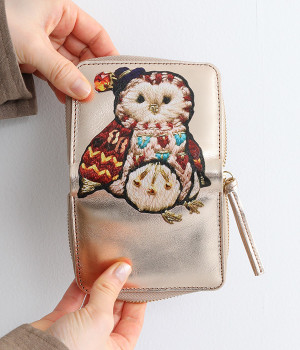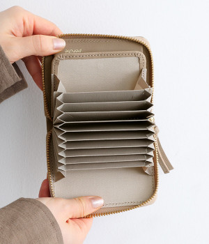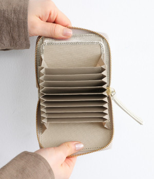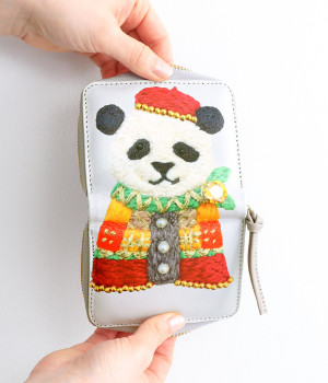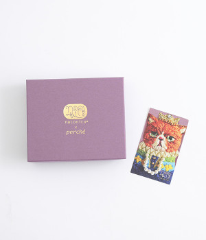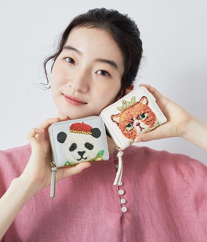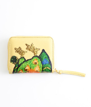 渋田なおこさんによる手刺しゅうブランド「naconico」と「ペルケ」のコラボレーション。まるで絵画のような刺しゅう作品をUVプリントで表現して、上質な牛革に印刷しました。カードをたくさん入れたいけれどコンパクトに持ち運びたいという希望を叶える、ジャバラ式カード収納付きの財布です。本体にはスキミング防止シートが内蔵されており、カードのスキミング被害を防止。大きく開くボックス型の小銭入れは、中が一目瞭然で取り出しやすい仕様です。お札を折らずに収納できるのもうれしいポイント。ミニショルダーやハンドバッグ、ポケットにも入るサイズで、シーンを選ばず活躍します。