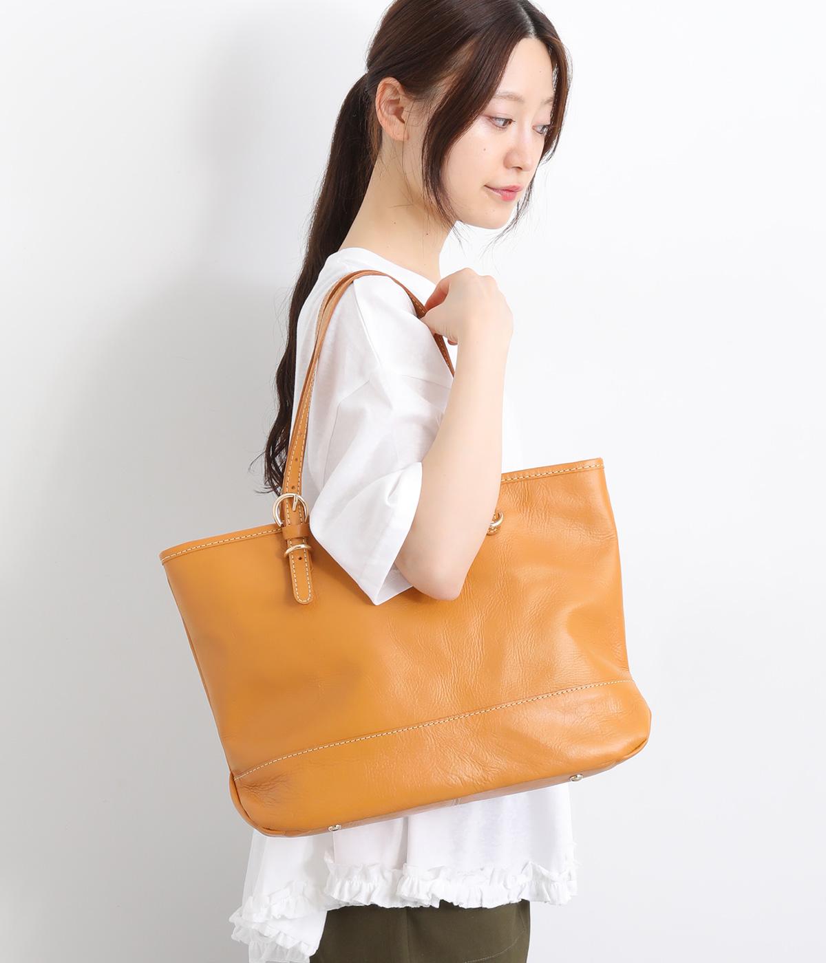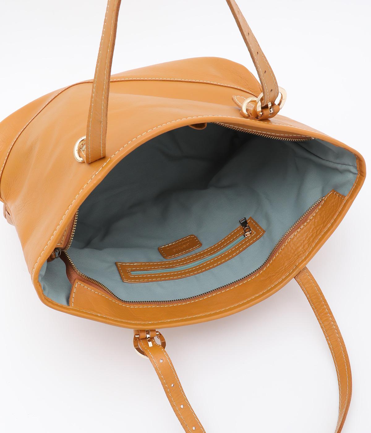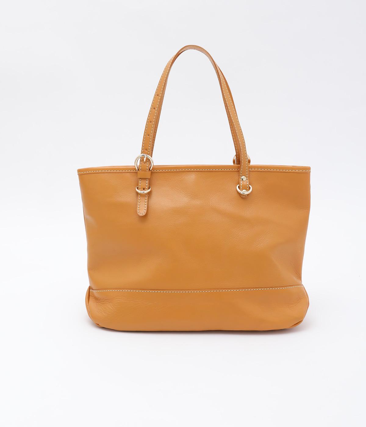 自然なシワ感がありながらも自立するしっかりとしたバリのナチュラルレザーを使用しています。バックルなどのパーツにはゴールドをチョイスしてリッチ感もアップ。内布つきで利便性も◎。