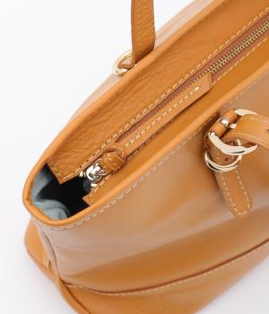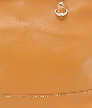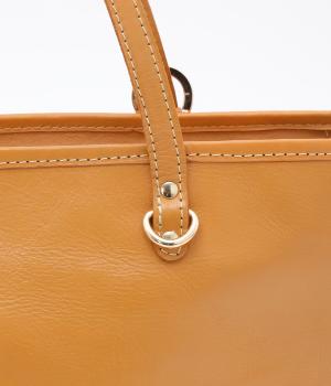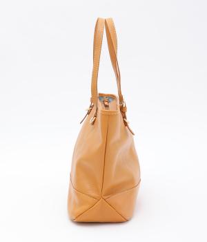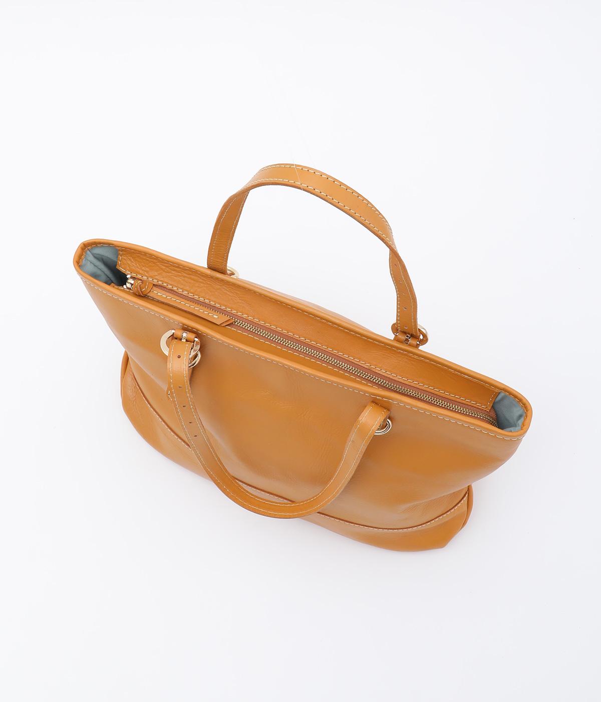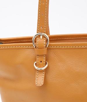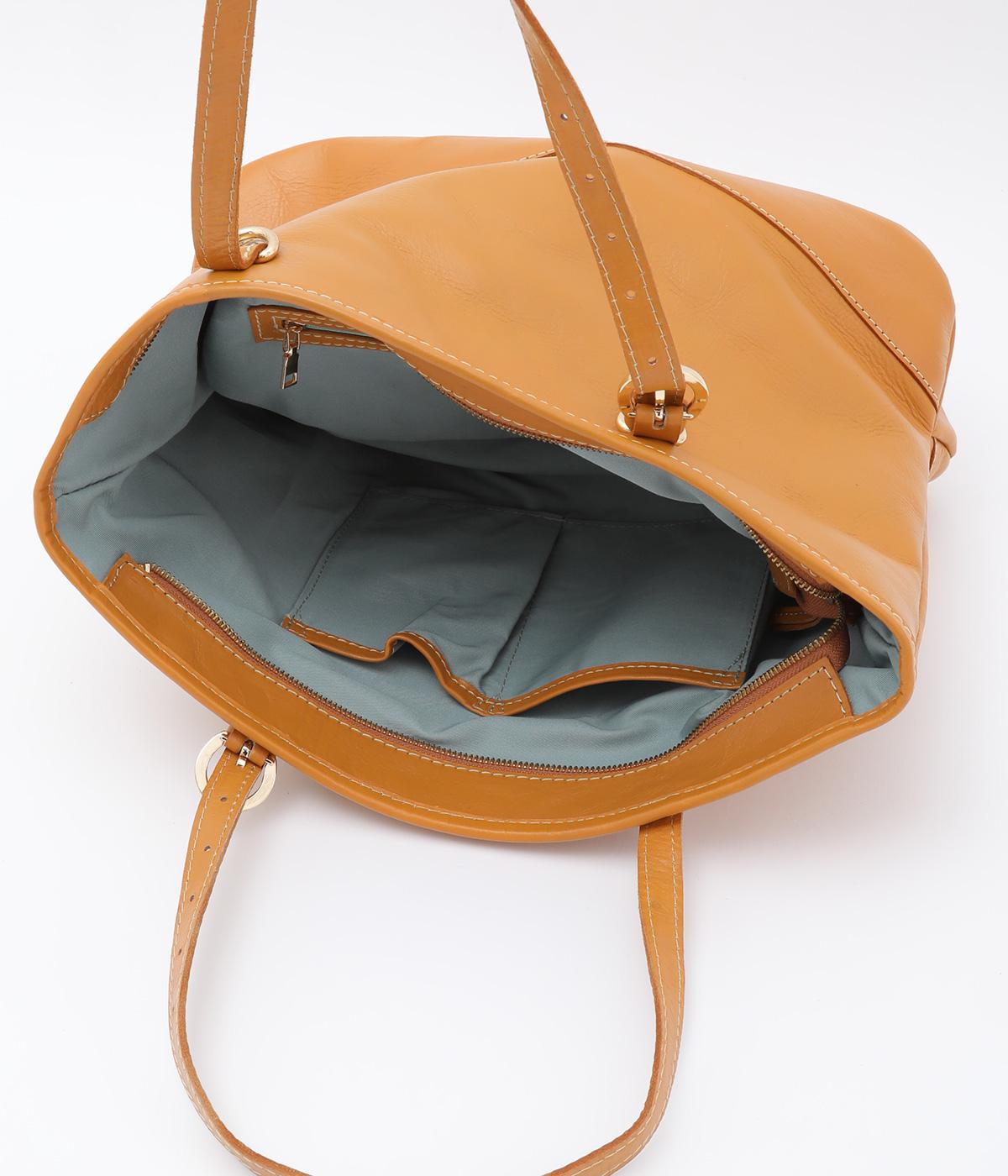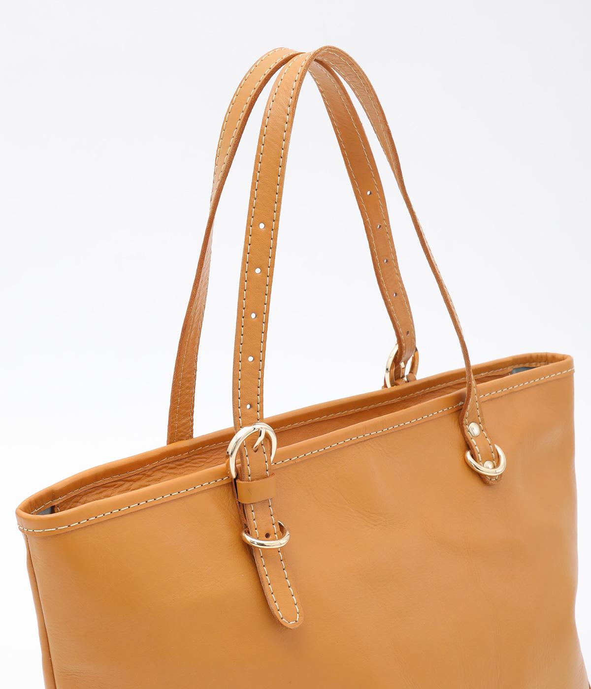 自然なシワ感がありながらも自立するしっかりとしたバリのナチュラルレザーを使用しています。バックルなどのパーツにはゴールドをチョイスしてリッチ感もアップ。内布つきで利便性も◎。