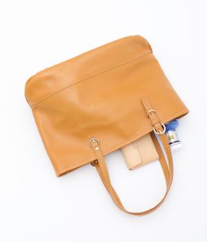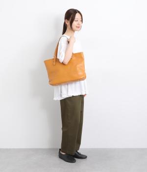 A4ファイルが入る実用性の高さときちんと感を出してくれるクラス感を両立させました。自立するしっかりしたフォルムがポイント。ハンドルはベルトで調整でき、手持ちから肩掛けまでお好みでどうぞ。口元ファスナーで防犯面も◎。