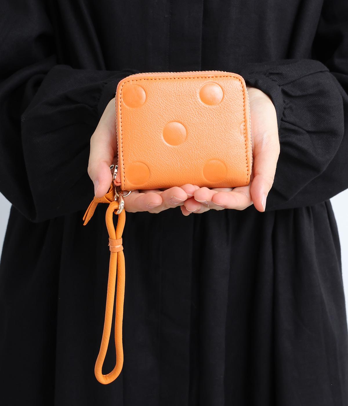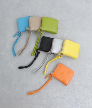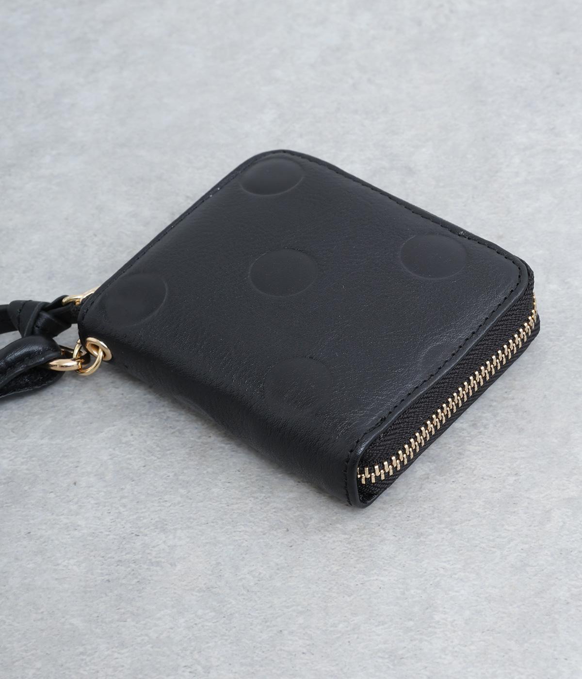 やわらかな牛革にかわいらしいドットの型押しを施しました。てのひらに収まるパームフィットで持ち運びしやすいのも◎。使うほどに馴染んで、変化する表情も楽しめます。