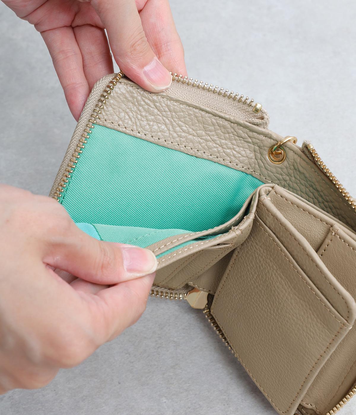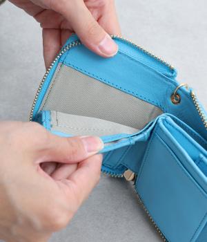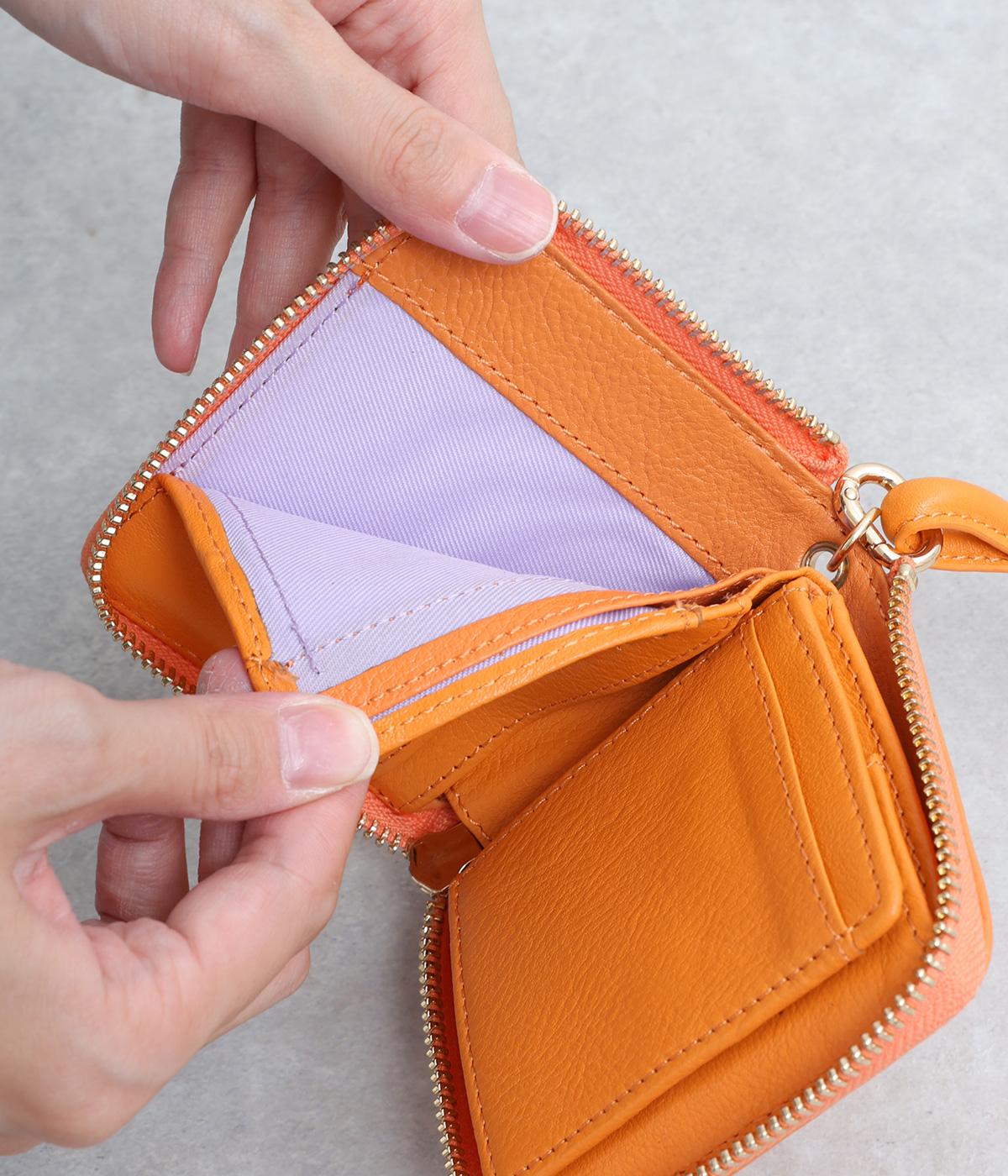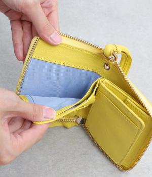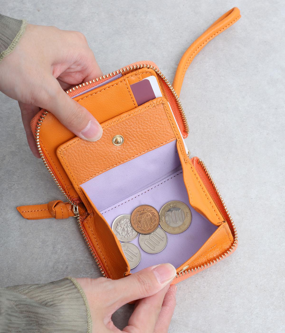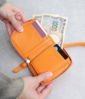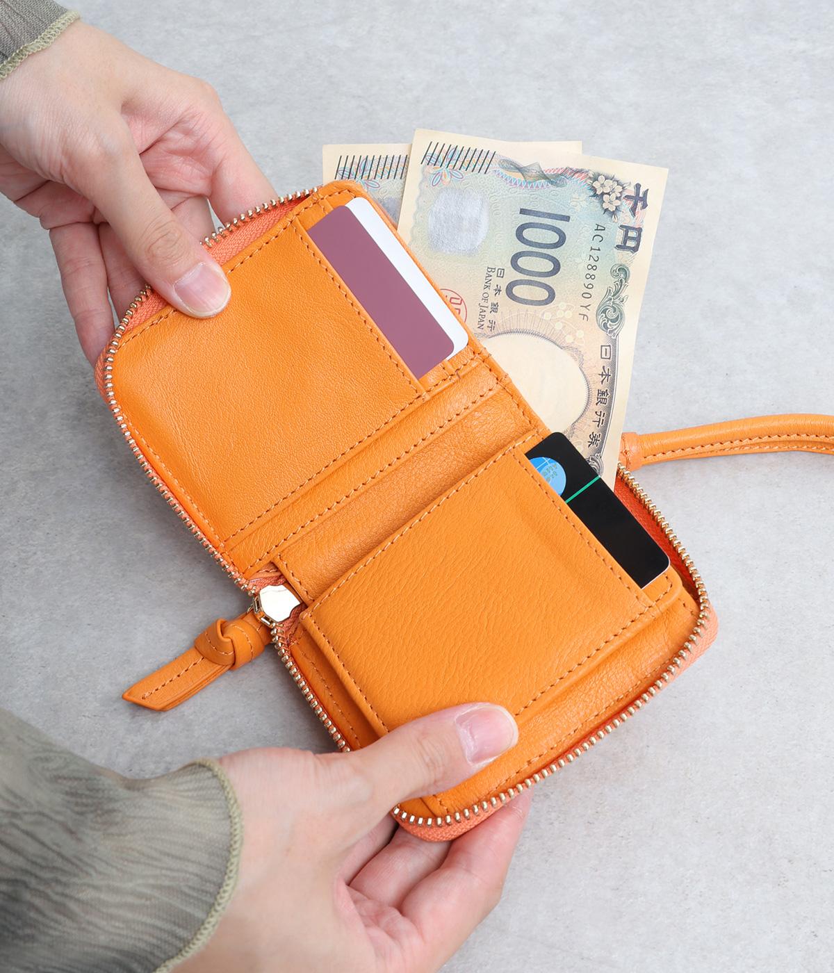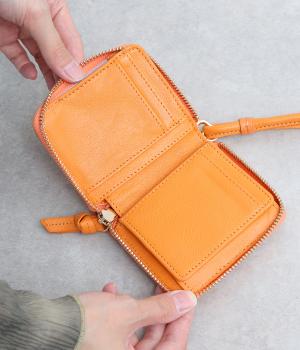 コンパクトなサイズながら、カードポケット、札入れ、ボタンつきの小銭入れと、機能性も抜群。小さいお財布派の方におすすめです。ストラップ付きで、持ち運びにもかばんからの出し入れにも便利です。