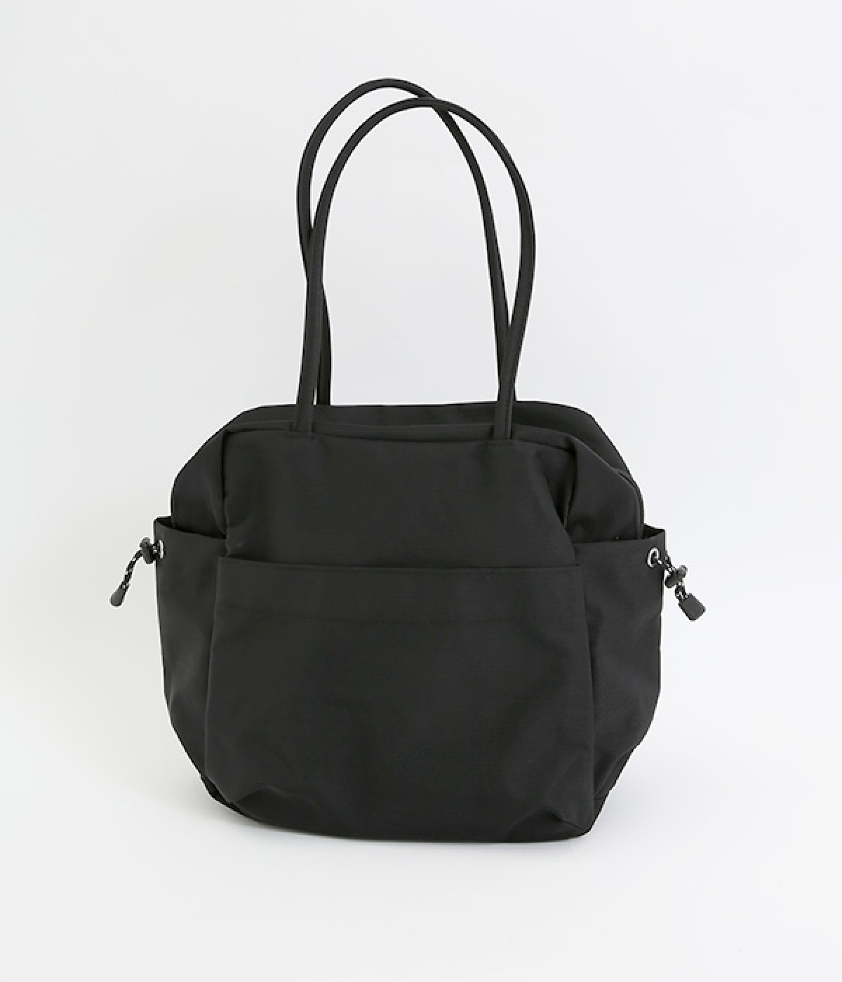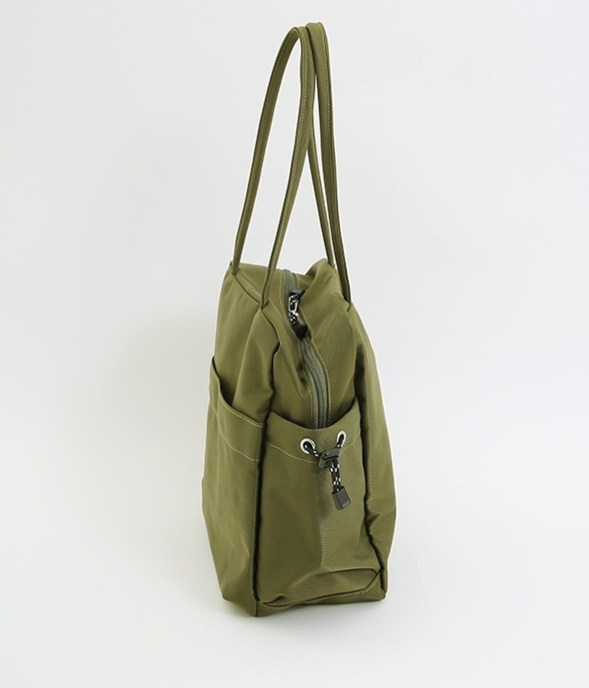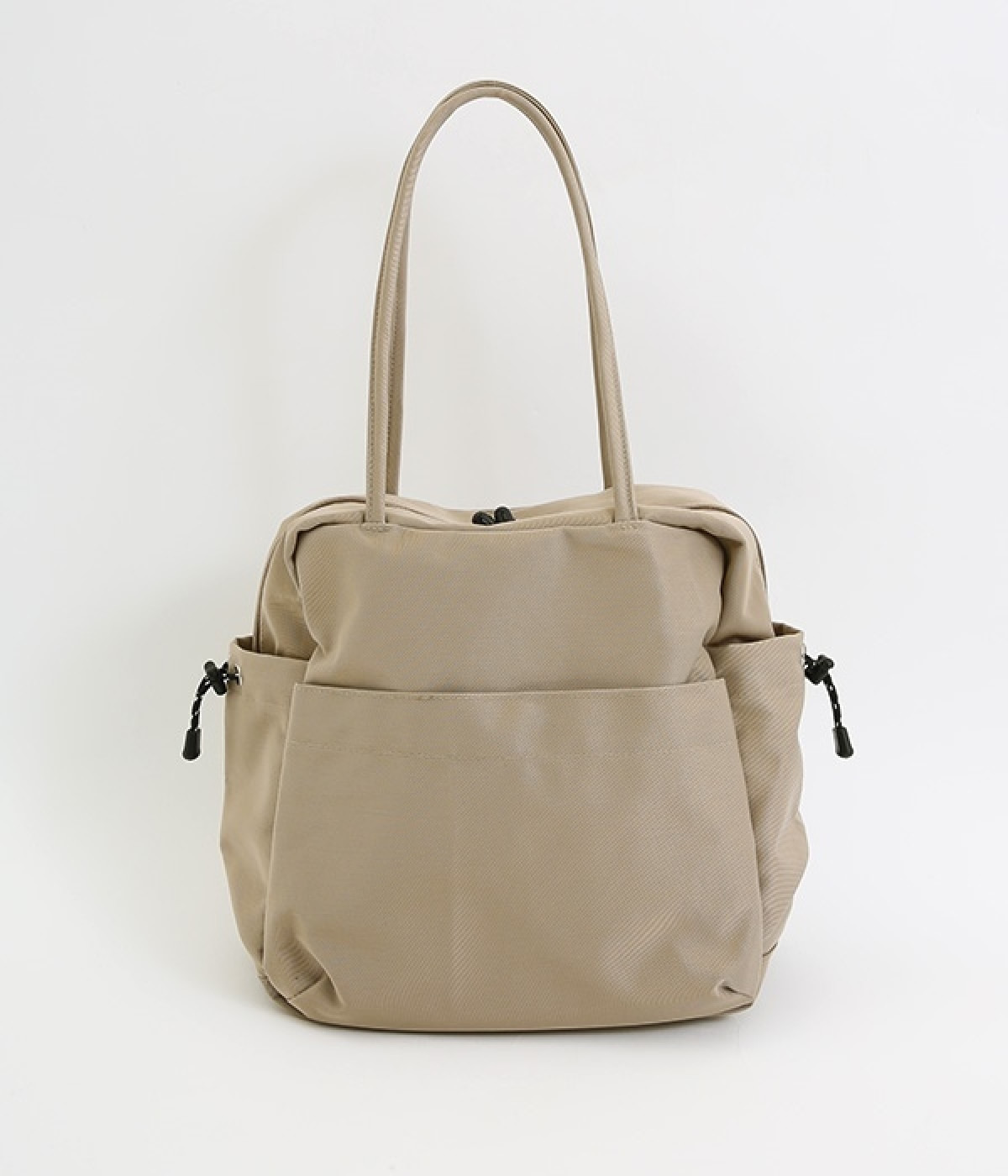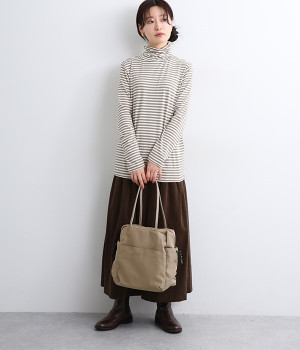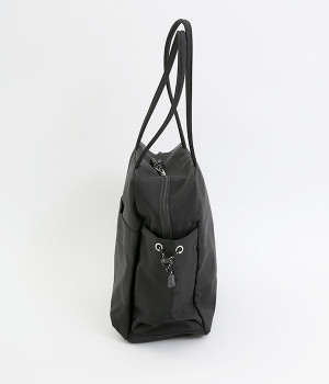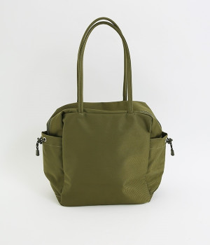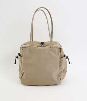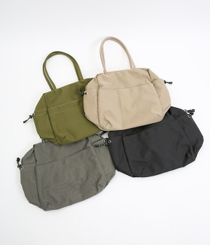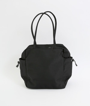 スクエア型が新鮮なナイロン製のトートバッグ。サイドポケット部分にアジャスターコードを用い、アウトドア風のテイストを盛り込みました。B5サイズのノート類が入り、マチも広く設定されていてデイリーユースにぴったりな容量。さっと肩に掛けられるハンドルの長さや、開閉の方向が自由なダブルファスナー方式も、機能性を高めるポイントです。