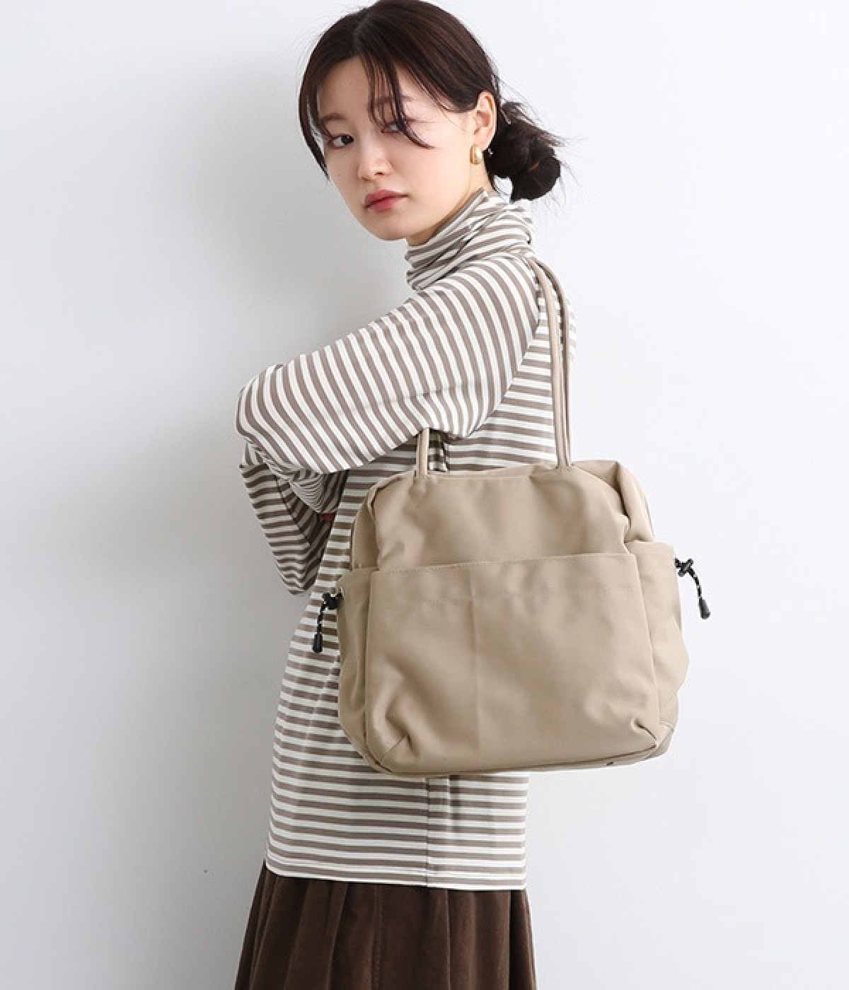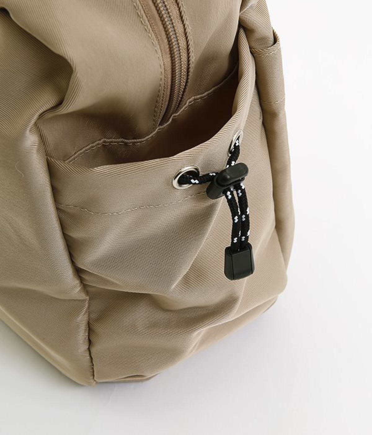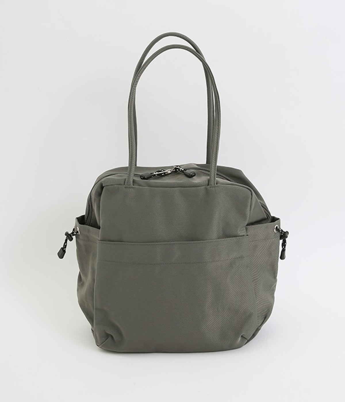 スクエア型が新鮮なナイロン製のトートバッグ。サイドポケット部分にアジャスターコードを用い、アウトドア風のテイストを盛り込みました。B5サイズのノート類が入り、マチも広く設定されていてデイリーユースにぴったりな容量。さっと肩に掛けられるハンドルの長さや、開閉の方向が自由なダブルファスナー方式も、機能性を高めるポイントです。