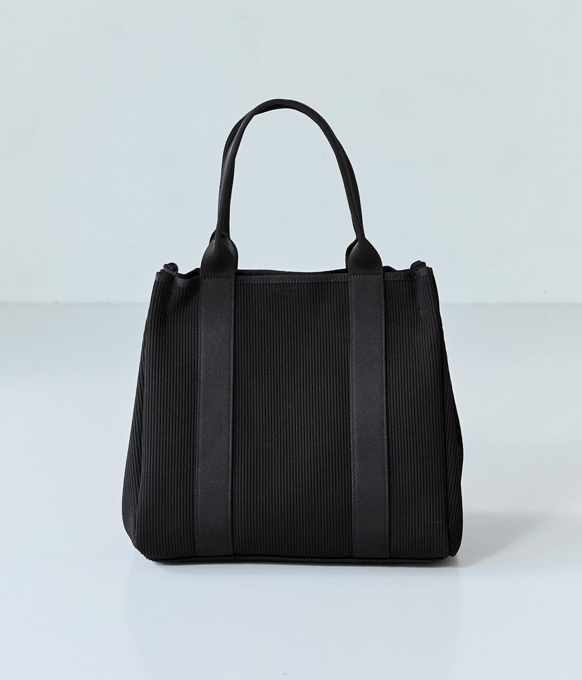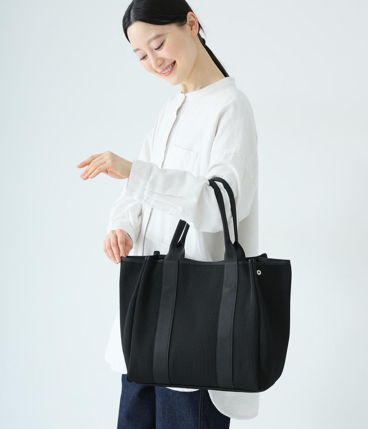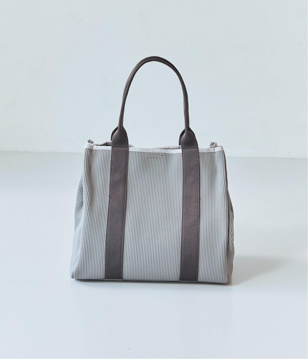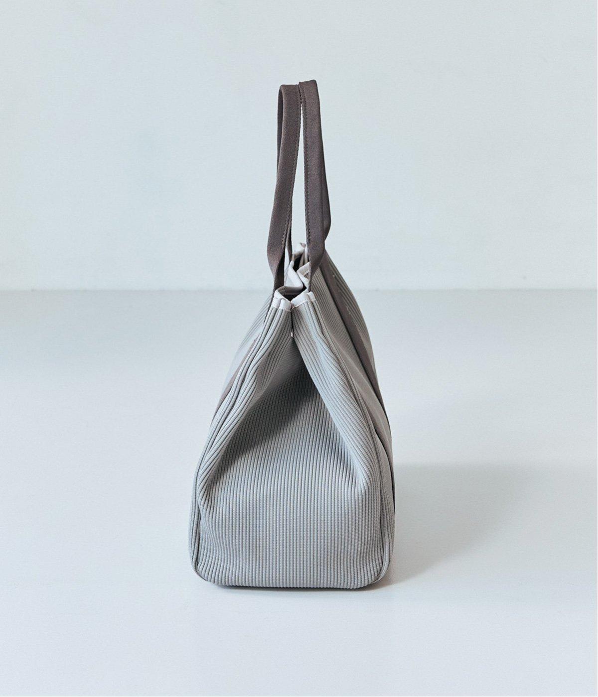 縦方向の畝が特徴のニットジャカードを使用しています。荷物をたくさん入れてもシルエットをきれいにキープしてくれる、しっかりとした厚みとハリ感が魅力です。