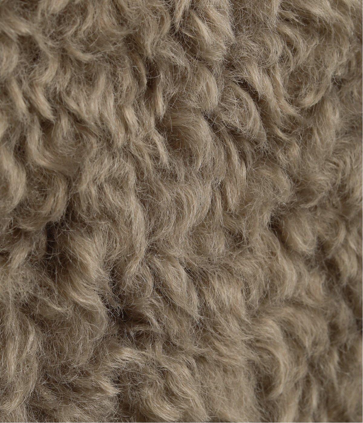 羊のようにくるくるとした毛並みが可愛らしいエコファーと、あたたかみのある起毛チェック柄のリバーシブル仕様。ボリューム感がありながらも、ポリエステル製で軽やかな仕上がりです。