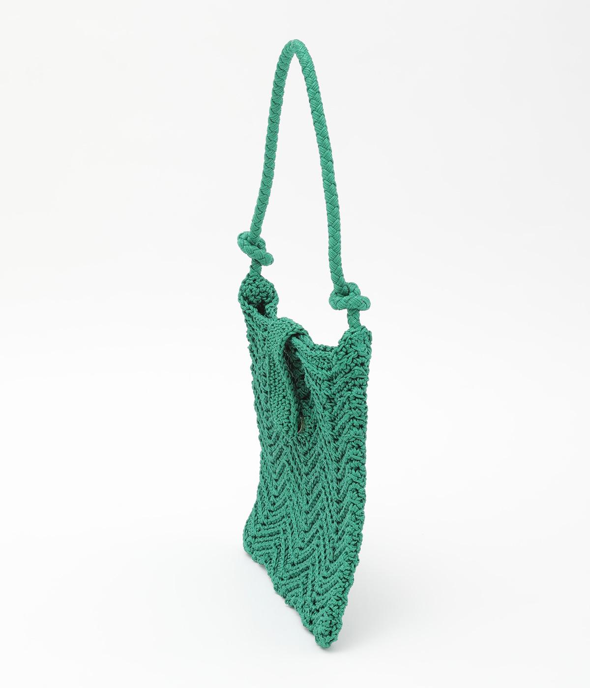 クラフト感あふれる山波編みのトートバッグは、手提げにも肩掛けにもなるちょうどいいサイズ感にこだわりました。お出掛けの必需品が収まる小ぶりな作りで、身軽に持ち歩けます。レトロさとスタイリッシュ感のバランスが◎。