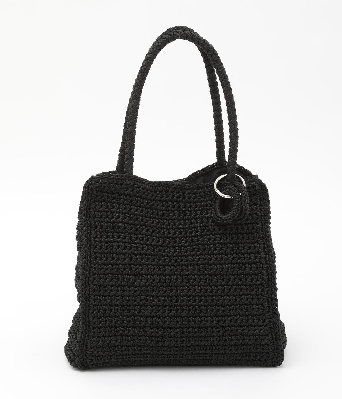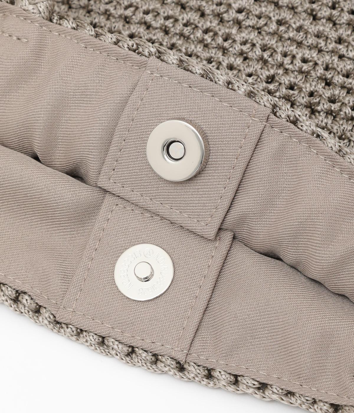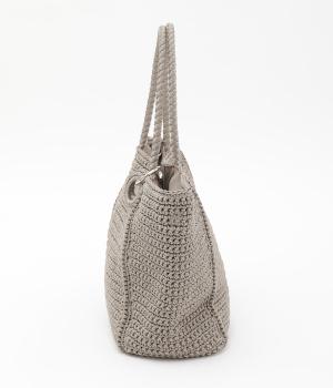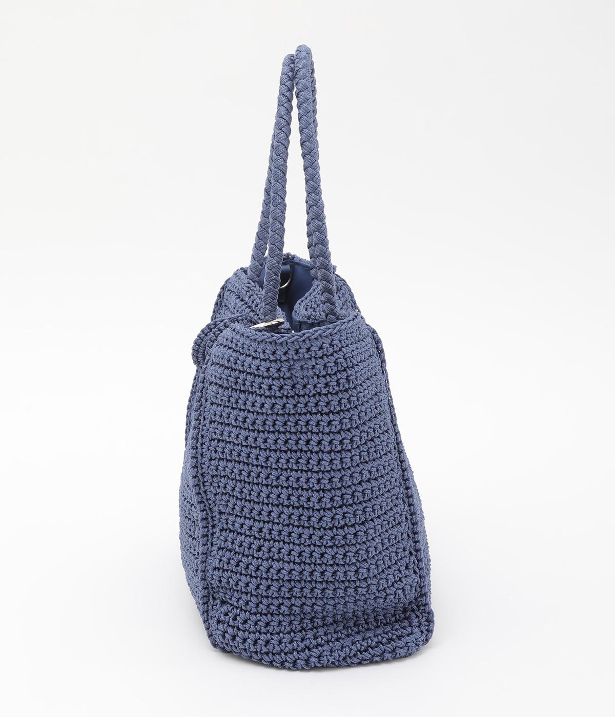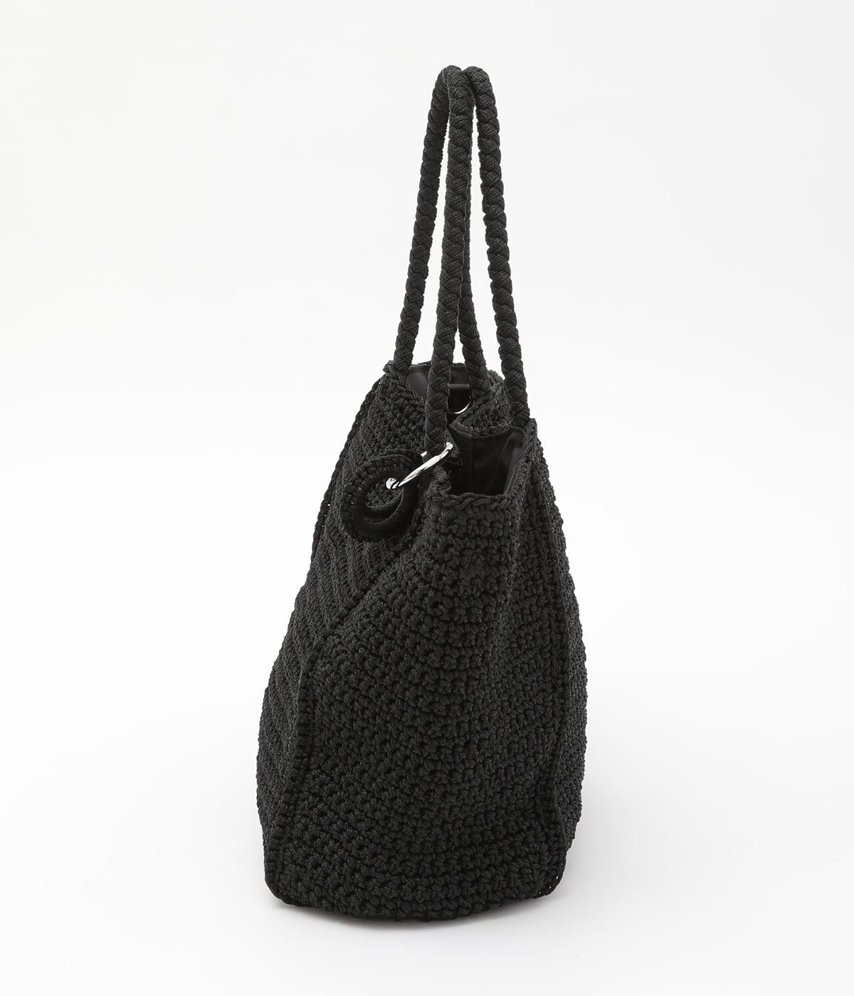 ほどよい光沢でナチュラル感とスタイリッシュさを併せ持ったポリエステル製のクロシェトート。やわらかく丁寧に編みこみ、内布付きで耐久性もアップ。
