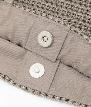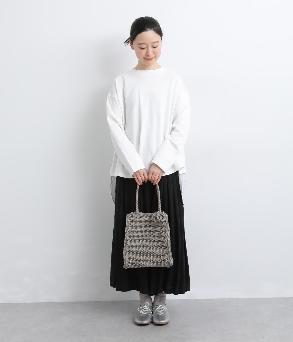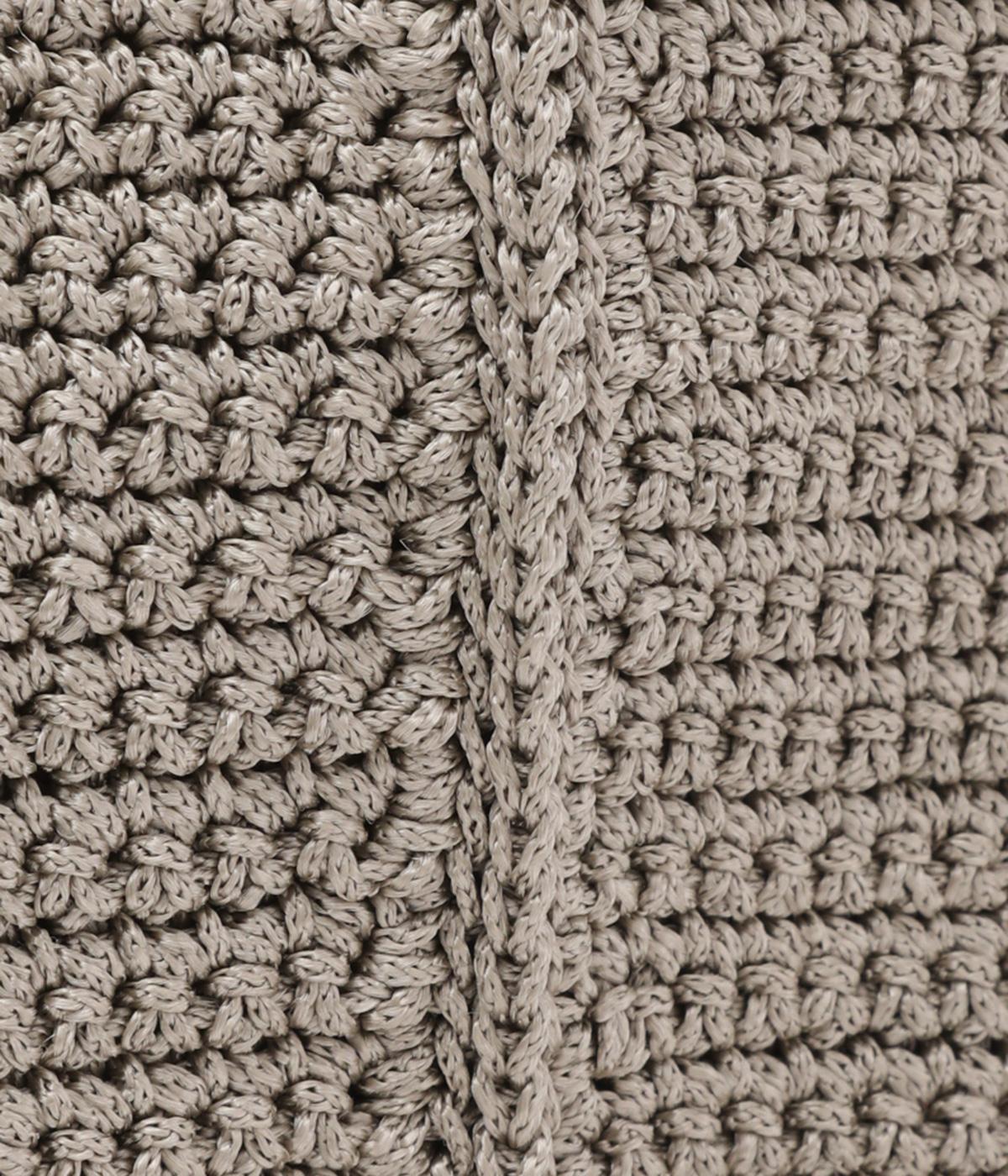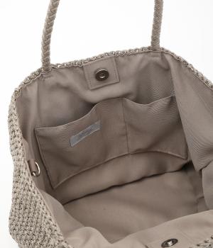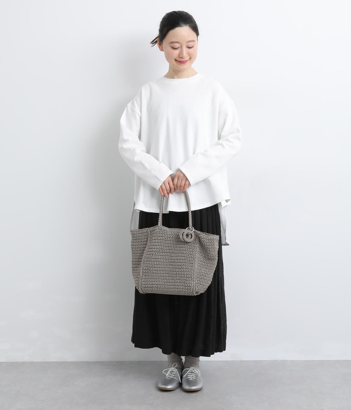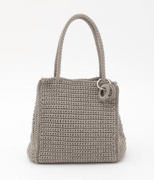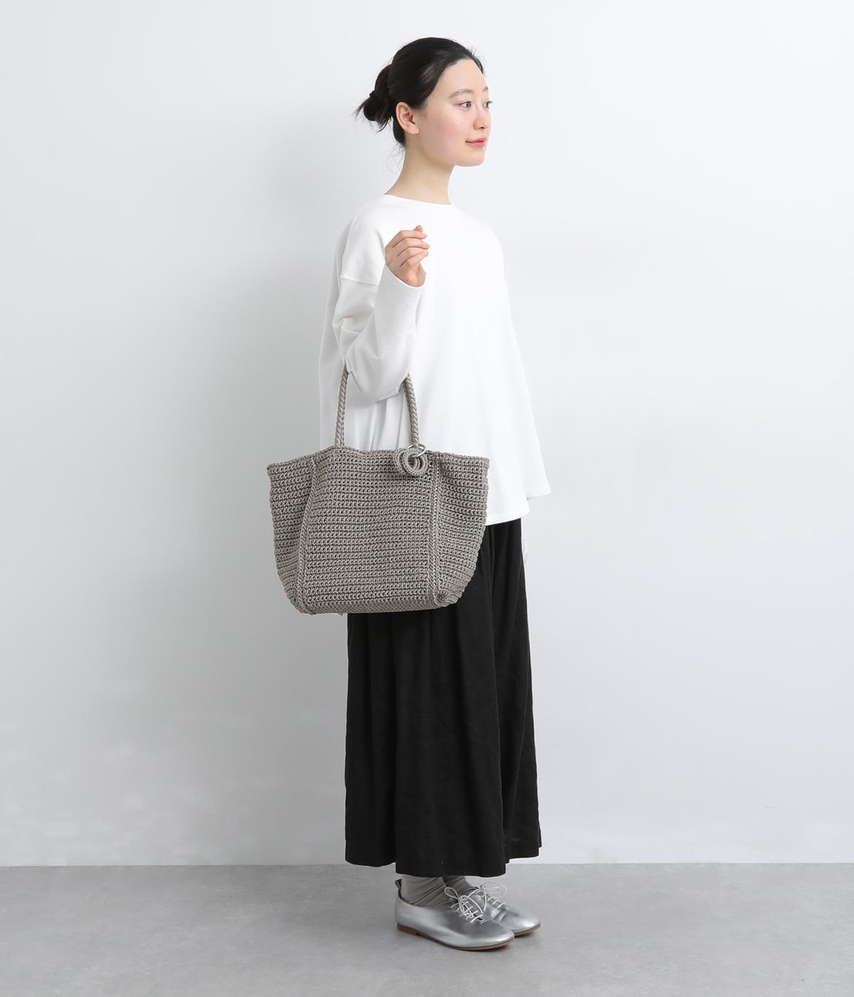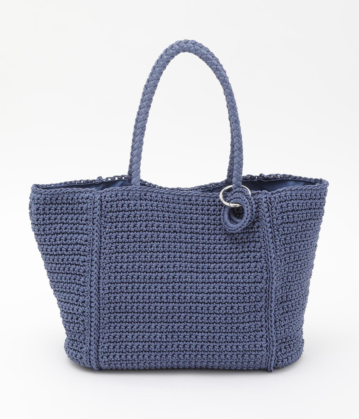 ほどよい光沢でナチュラル感とスタイリッシュさを併せ持ったポリエステル製のクロシェトート。やわらかく丁寧に編みこみ、内布付きで耐久性もアップ。