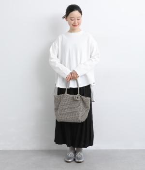 A4サイズも収納でき、肩掛けも可能でまいにちのお出掛けに活躍するトートバッグ。内側のナスカンを留めると形が変わってちょっとしたアレンジに。リングチャームが大人なポイントで、ナチュラルからきれいめまで幅広くマッチ。