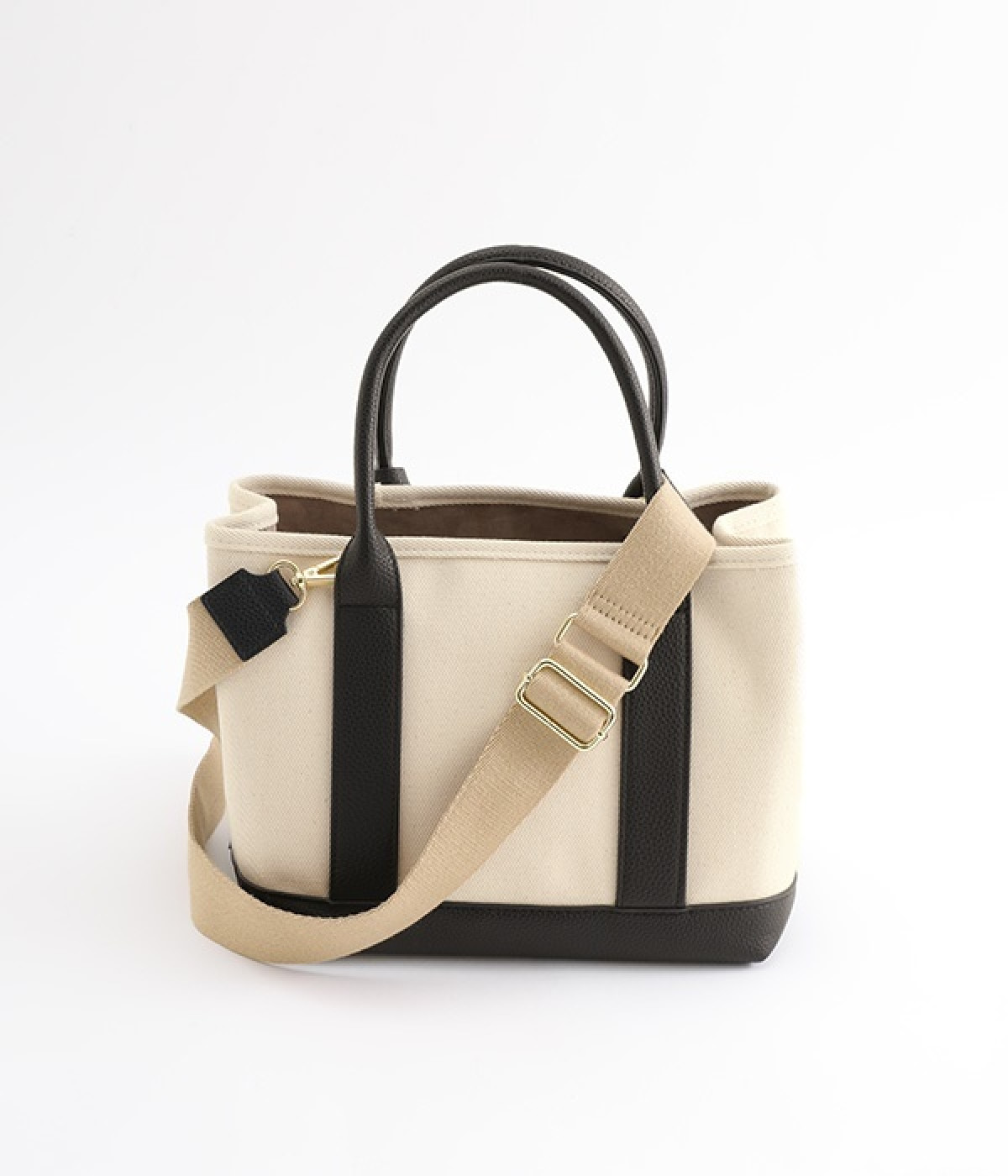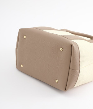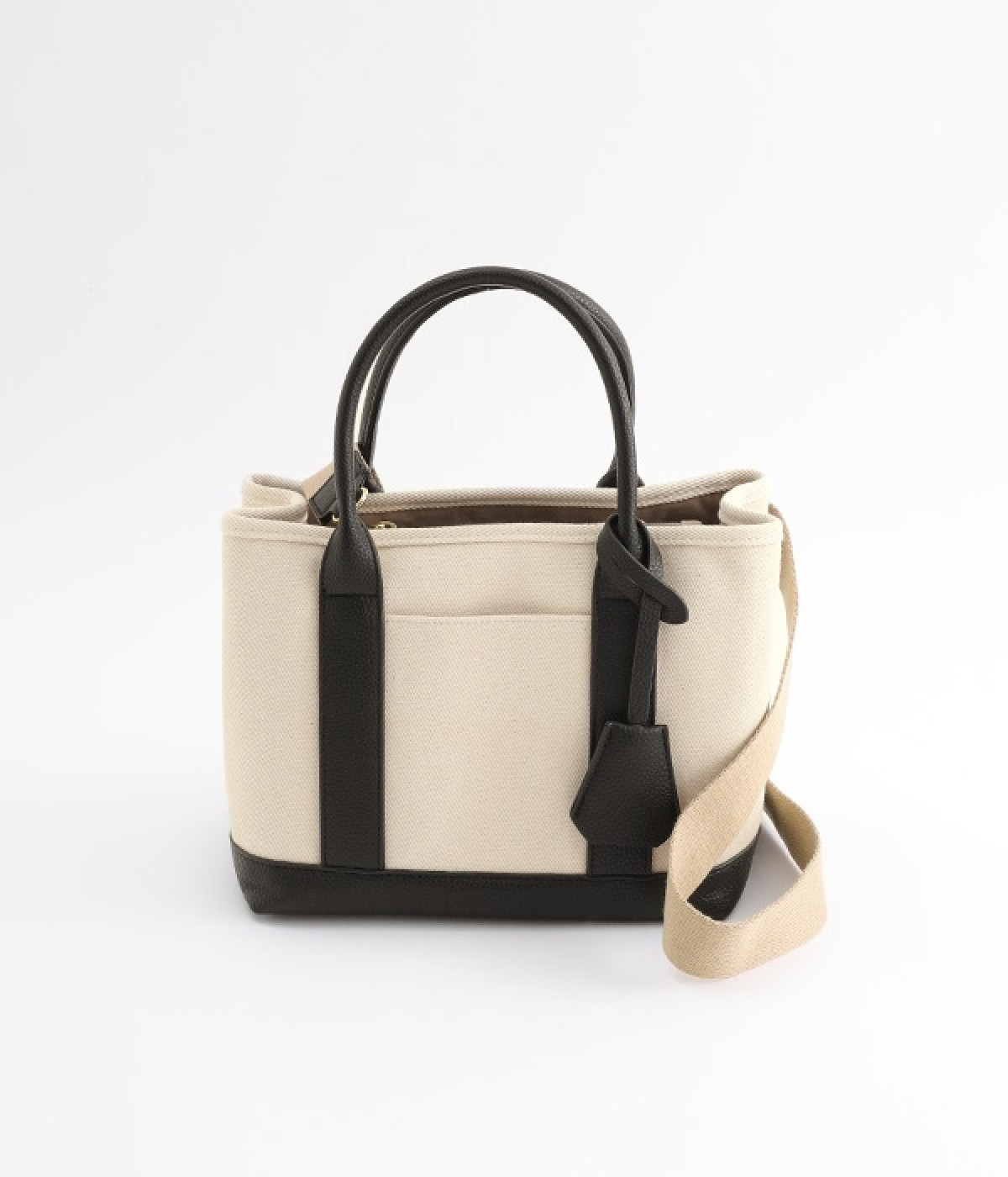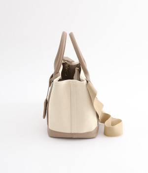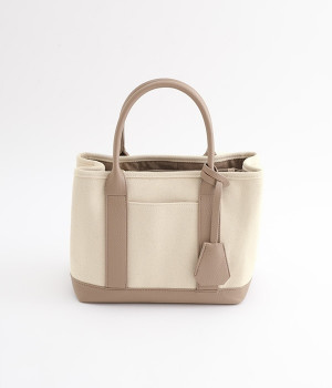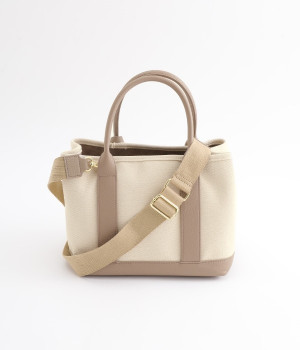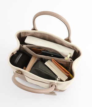 取り外し可能なショルダーヒモ付き。2wayの持ち方ができるコットンキャンバスのトートバッグです。物が迷子になりにくいパーテーションで仕切られたデザイン。中が丸見えにならない目隠しフラップや汚れにくい底鋲付きで、使い心地のよさにも配慮しました。通年対応の丈夫な生地は、適度なハリがあるのできれいなシルエットをキープ。長財布や500mlペットボトル、ポーチなどのお出かけ必需品が入るほどよい大きさです。