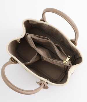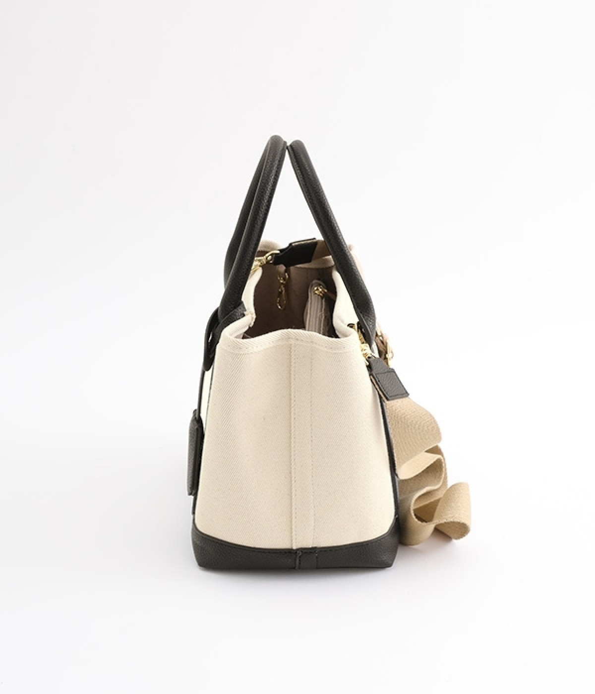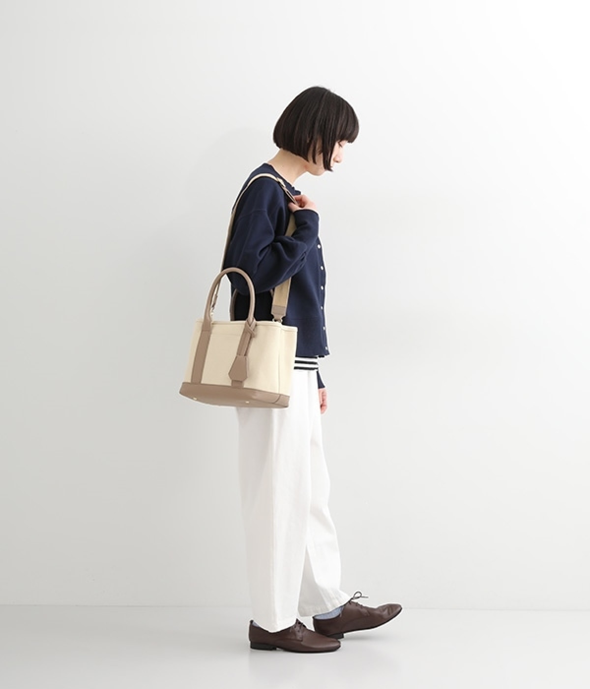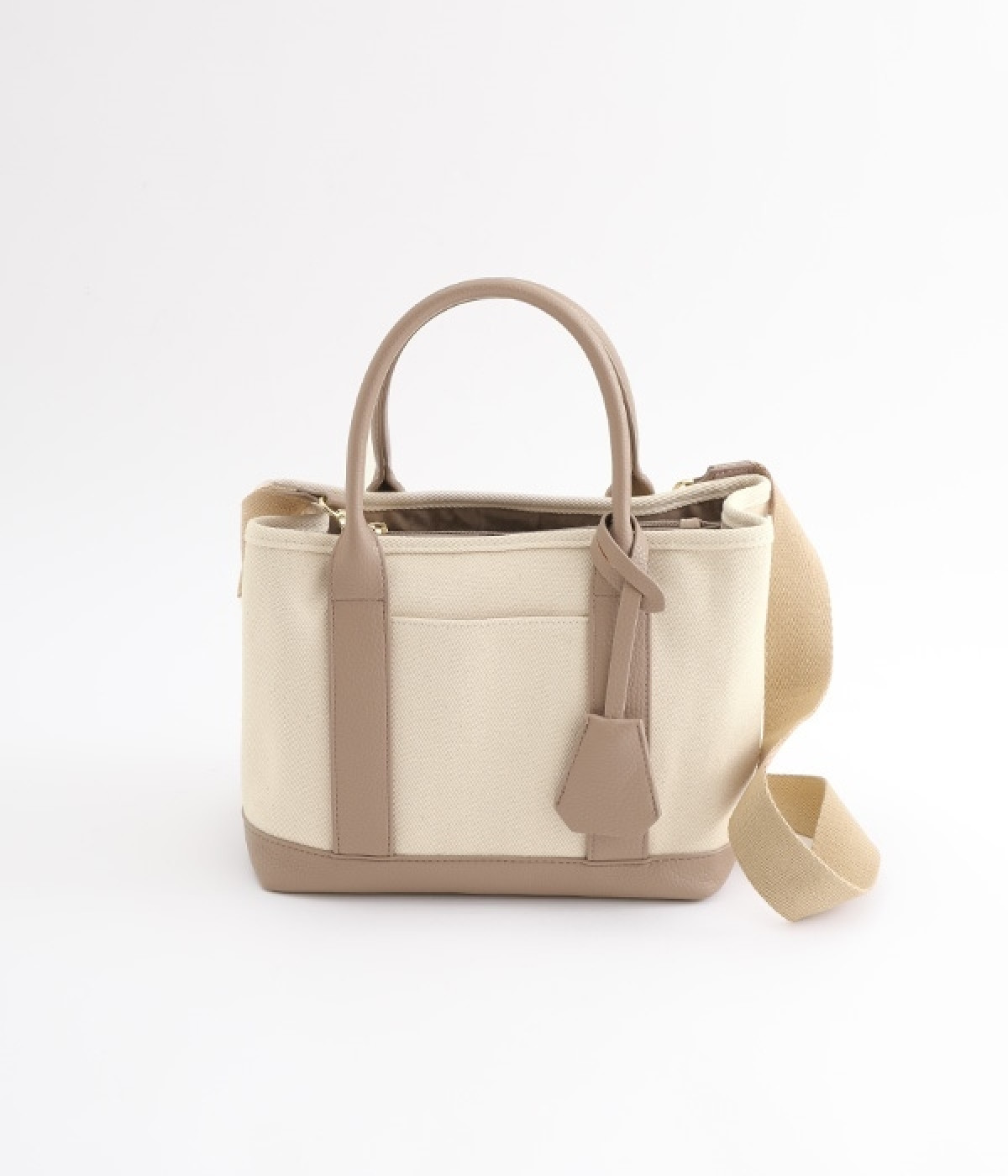 取り外し可能なショルダーヒモ付き。2wayの持ち方ができるコットンキャンバスのトートバッグです。物が迷子になりにくいパーテーションで仕切られたデザイン。中が丸見えにならない目隠しフラップや汚れにくい底鋲付きで、使い心地のよさにも配慮しました。通年対応の丈夫な生地は、適度なハリがあるのできれいなシルエットをキープ。長財布や500mlペットボトル、ポーチなどのお出かけ必需品が入るほどよい大きさです。