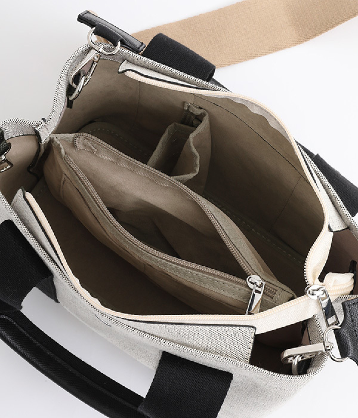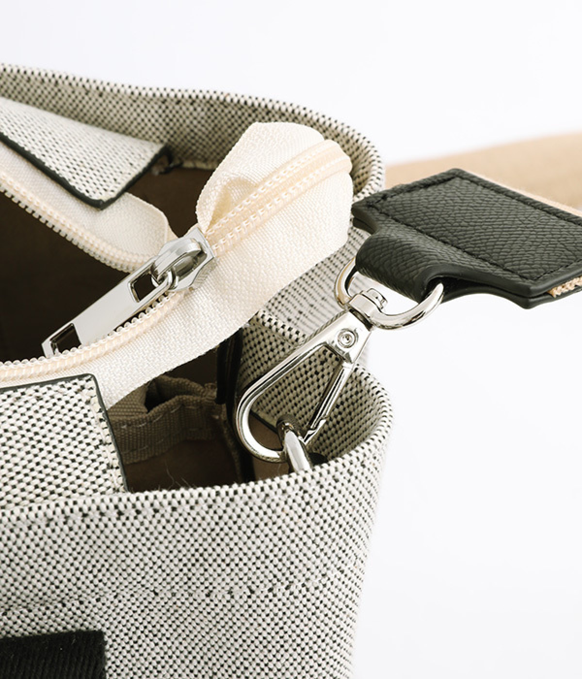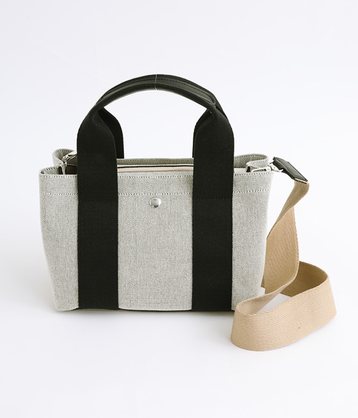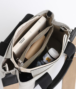 オールシーズン使えるエルガリー生地がきれいめな雰囲気の2wayトートバッグです。内側はパーテーションのように仕切られていて、中身が迷子にならないデザイン。一部の仕切りが可動式なので、アイテムに応じたアレンジができる実用設計です。長財布、500mlのペットボトル、ポーチなどお出かけに必要な物が入る普段使いにぴったりなサイズ。口元がファスナー仕様、斜め掛けもできるショルダーつきでとても使いやすいアイテムです。