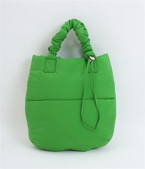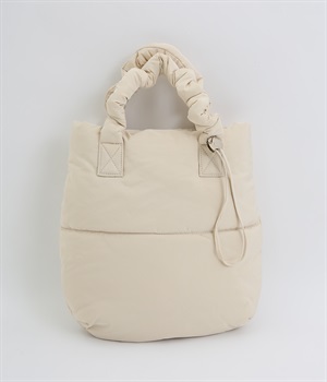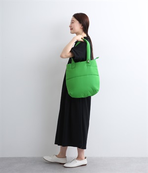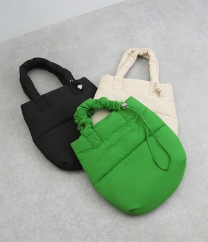 ドロスト仕様によってデザインや長さが調節できるハンドルが特徴的。短くクシュっとすれば手持ちに、長くして肩入れも可能です。A4サイズほどの使い勝手のいいつくりで、お洒落ポイントだけでなく実用性も◎。