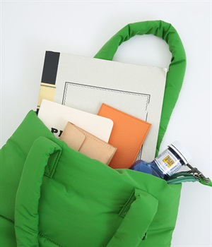 生地に詰め物をするパディング加工によってふわふわとした手触りを叶えました。見た目もふっくらでアイキャッチになり、クッション効果も期待できそう。