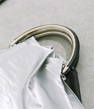 光沢のある素材に自然なシワ感が波のようにキラキラと光を放ち存在感を発揮。イミテーションレザーをあてた金手がリッチ感をさらにアップさせます。