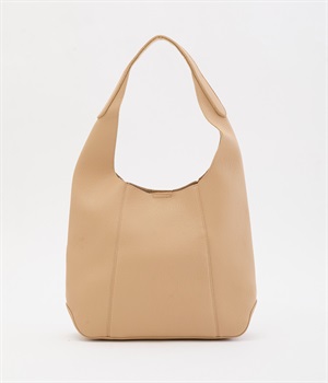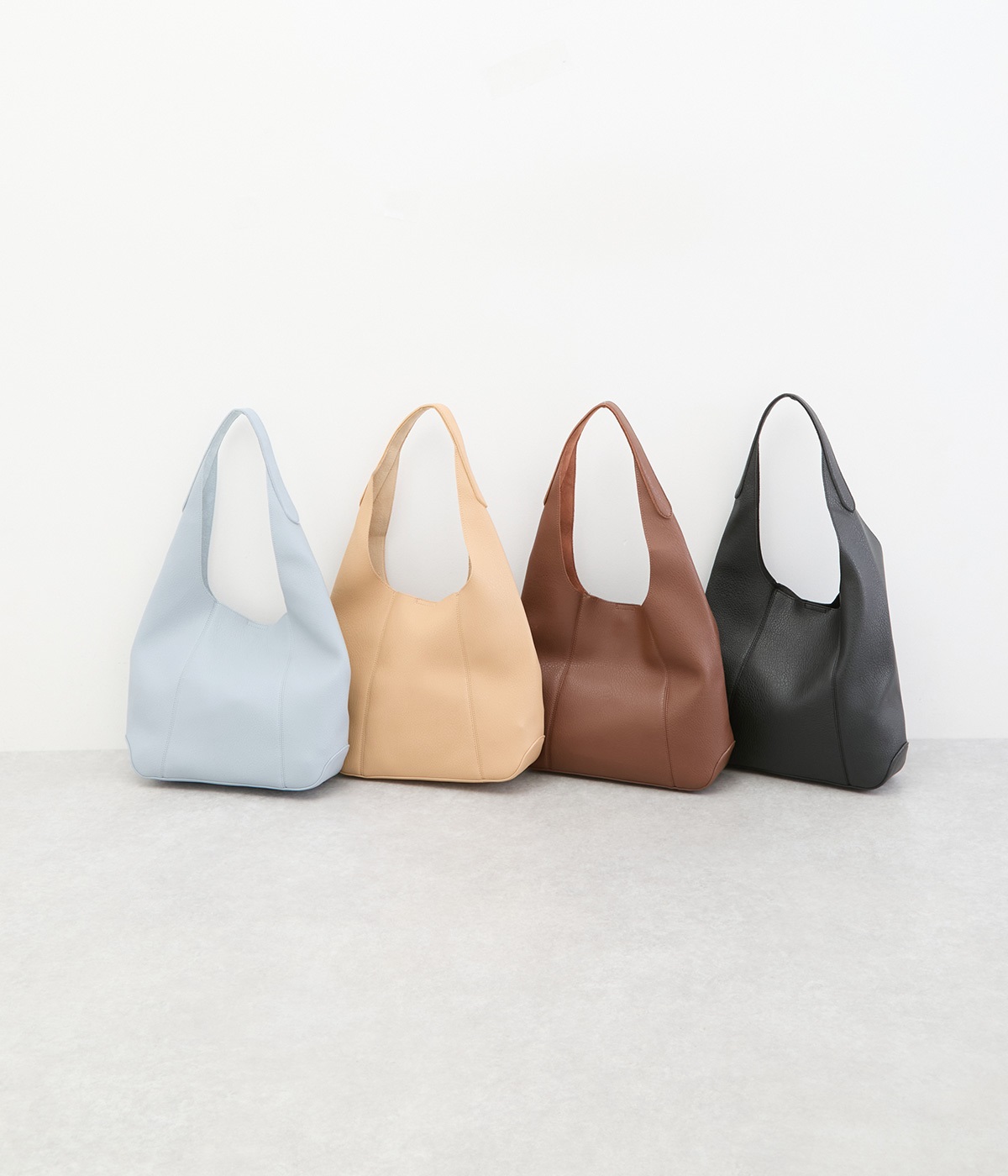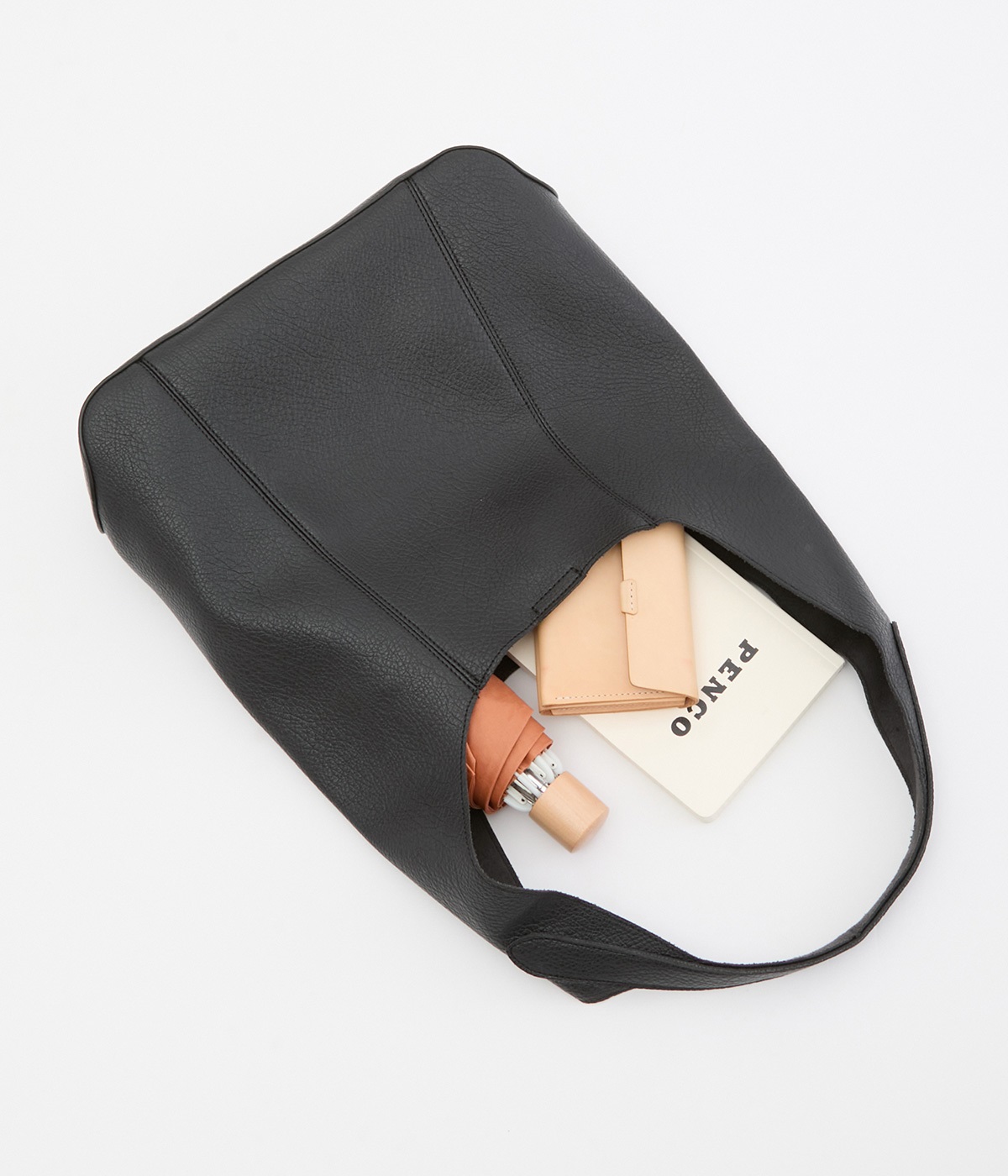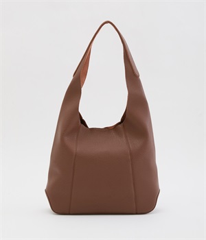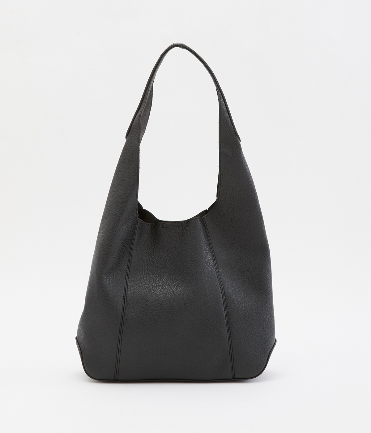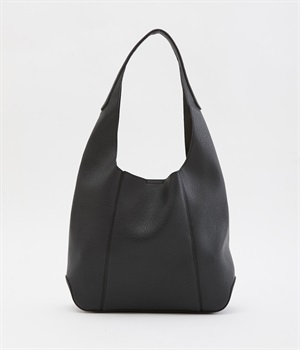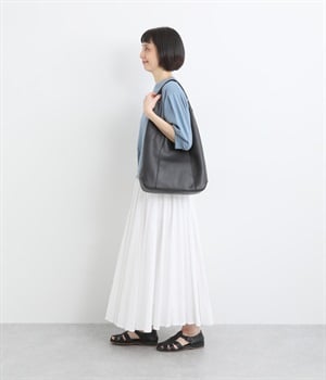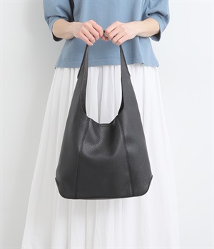 シックで大人顔なホーボーバッグは、A4サイズも入る使い勝手のいい仕立てです。肩入れもスムーズにできるワンショルダーでシンプルにまとめました。内側の配色ポケットもさり気ないお洒落ポイントに。
