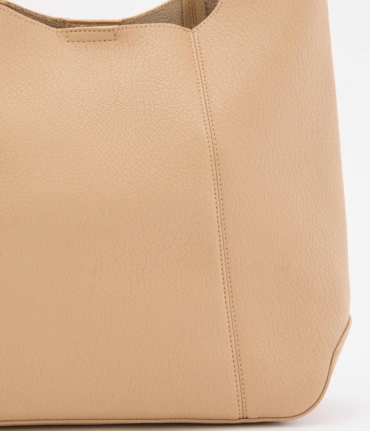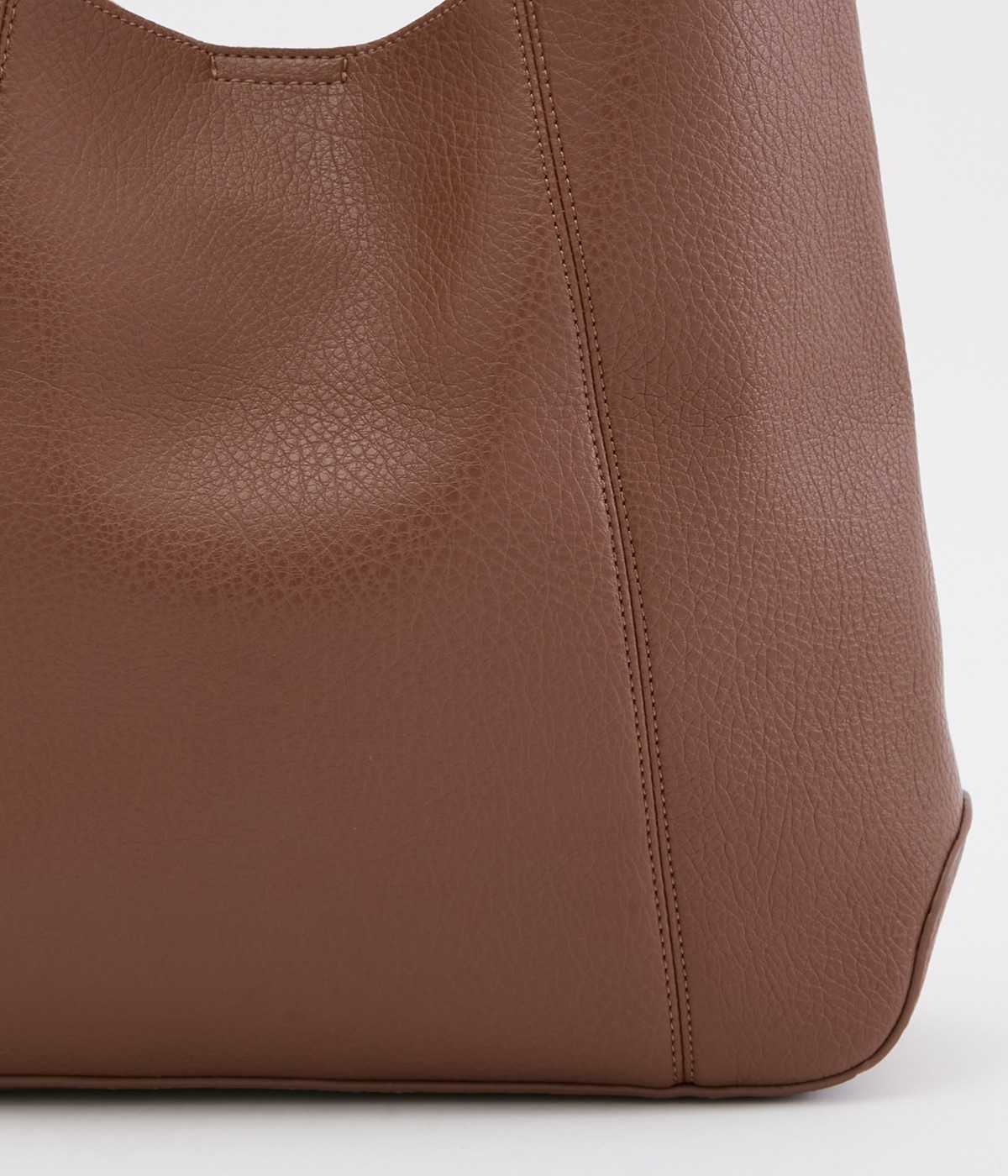 自然なシボ感がリアルレザーのような合成皮革を使用しています。スエード調の裏地をはり合わせた1枚仕立てで、やわらかでレザーライクな仕上がりです。