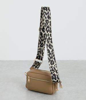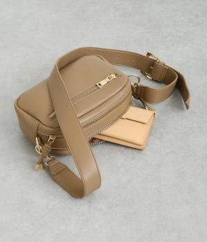 ほどよい光沢とやわらかさを備えた合成皮革。ゴールドのファスナーや金具で上品なムードに仕上げました。ストラップはアニマル柄と無地の2種類あり、気分に合わせて選べます。