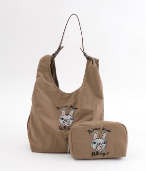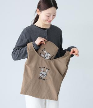ユニークな手書き風のアニマル刺しゅうが視線を集めるバッグです。レザー調のハンドルをつければ肩掛けもらくらく。本体は小さく折りたためるので、エコバッグとしても活用できます。バッグの中で見失いがちな小物をすっきりとまとめられる、お揃いデザインのポーチつきです。