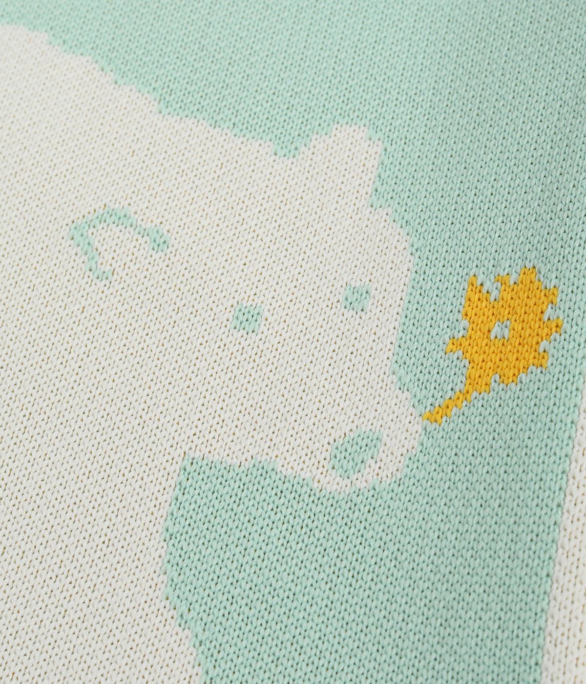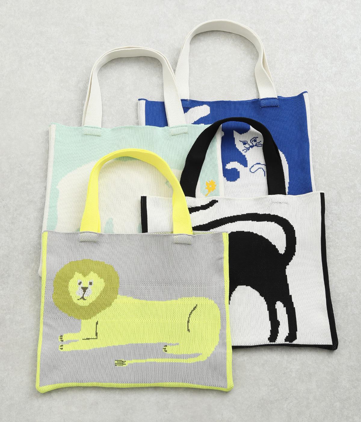 シンプルなバイカラーながらアニマルモチーフでインパクト抜群。スクエア型なのでデイリーなカジュアルスタイルになじみます。やわらかなニット製で体のラインにしっくりなじみ、肩掛けも◎。スタイリングのワンポイントにも。