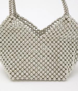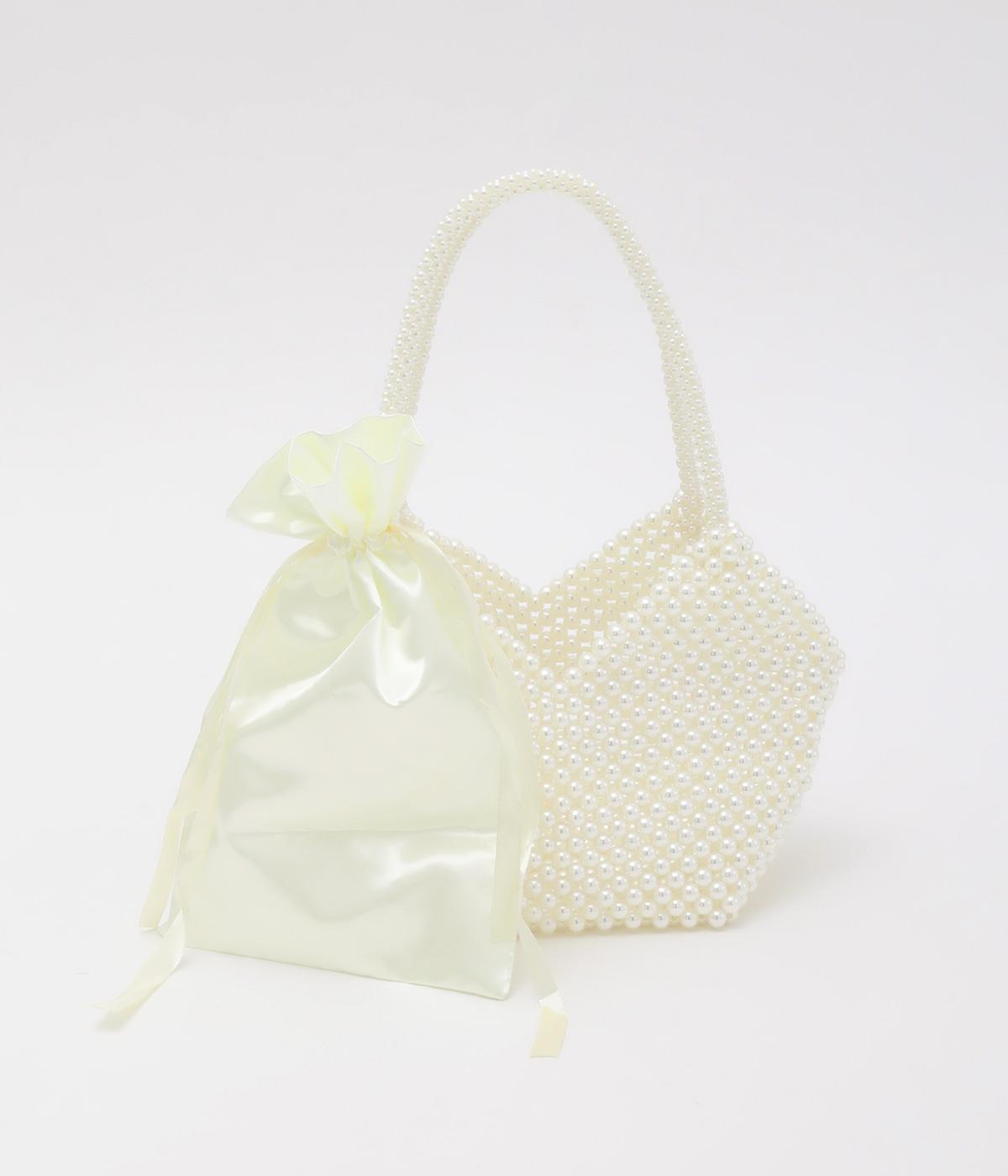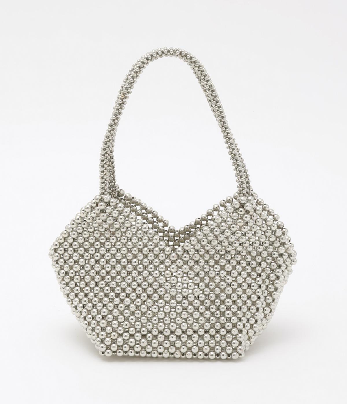 ビーズの輝きを活かしながら、ハートのフォルムに仕上げたかわいらしいミニバッグ。パーティシーンにはもちろん、気分を上げるアクセントとして普段のコーディネートにもおすすめです。スマートフォンや小さめの財布が入るサイズ感と、巾着つきなので安心して持ち歩けます。マチつきで自立するのもうれしいポイント。