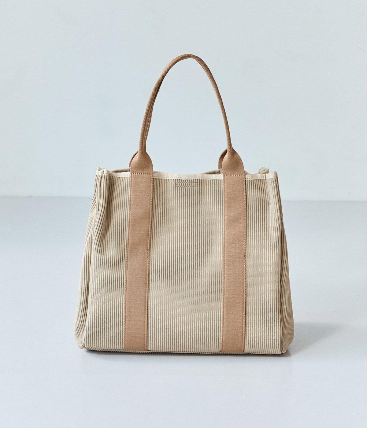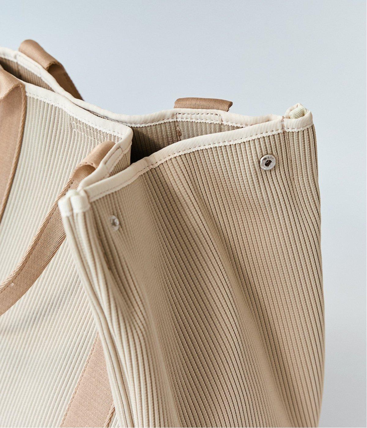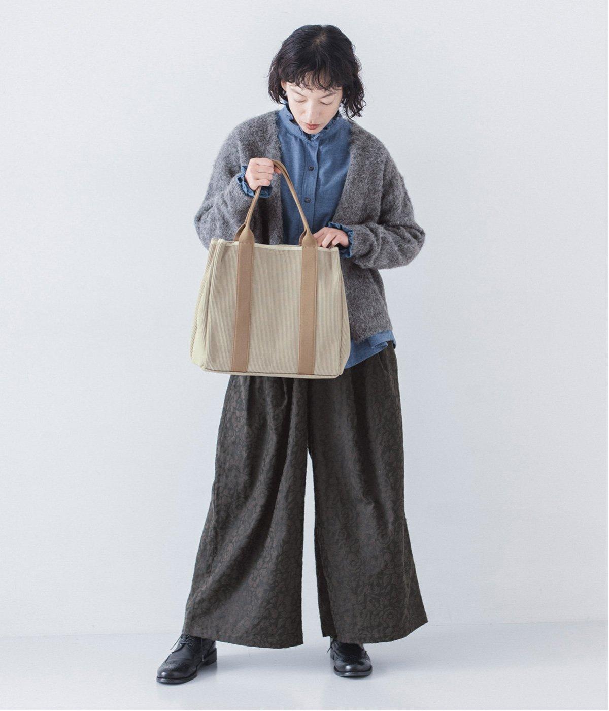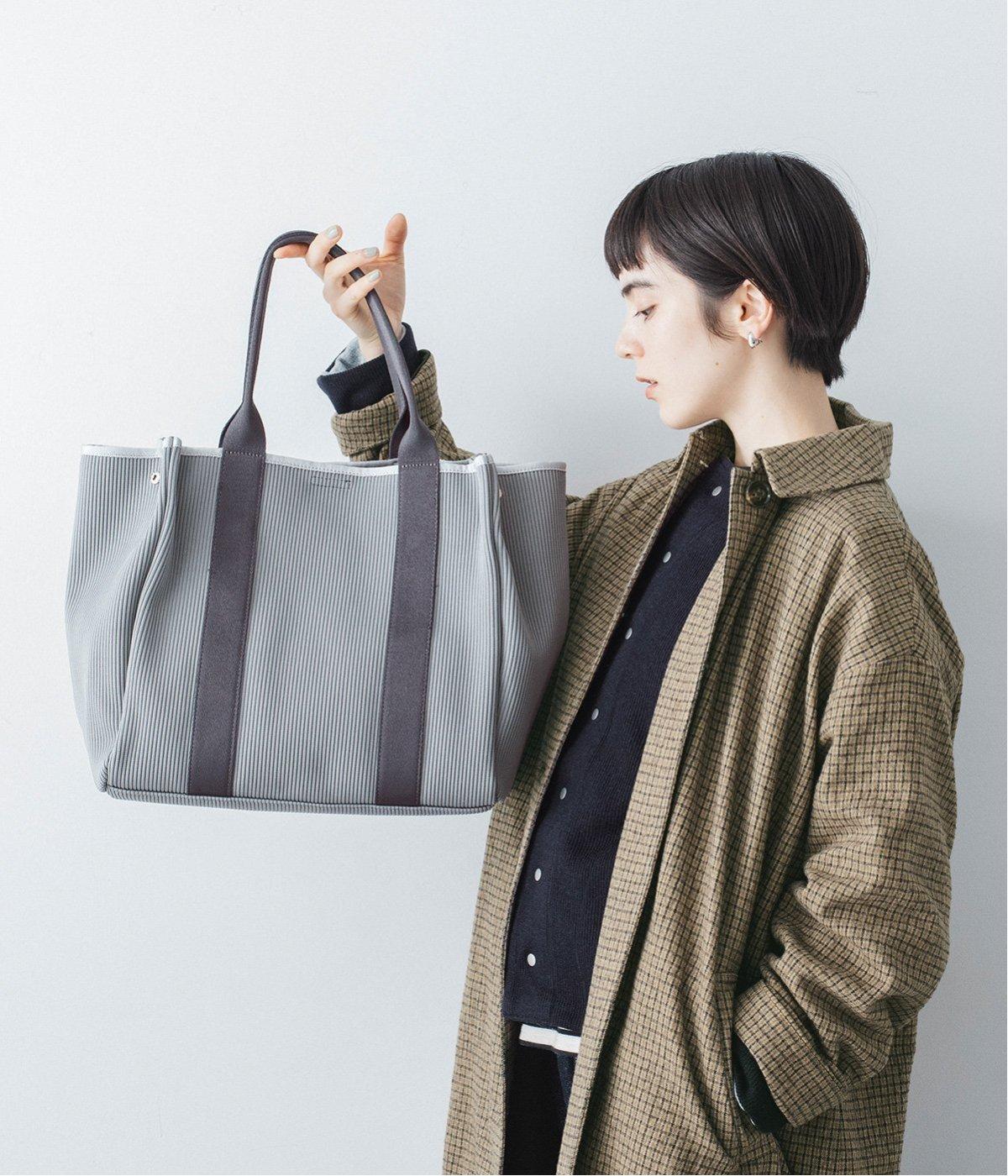 縦方向の畝が特徴のニットジャカードを使用しています。荷物をたくさん入れてもシルエットをきれいにキープしてくれる、しっかりとした厚みとハリ感が魅力です。