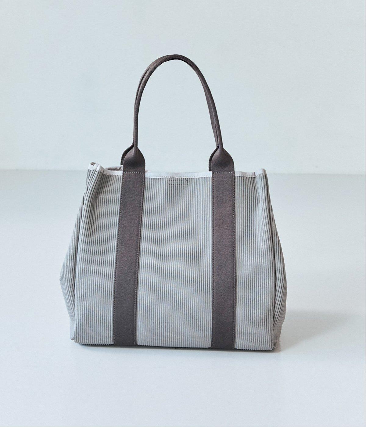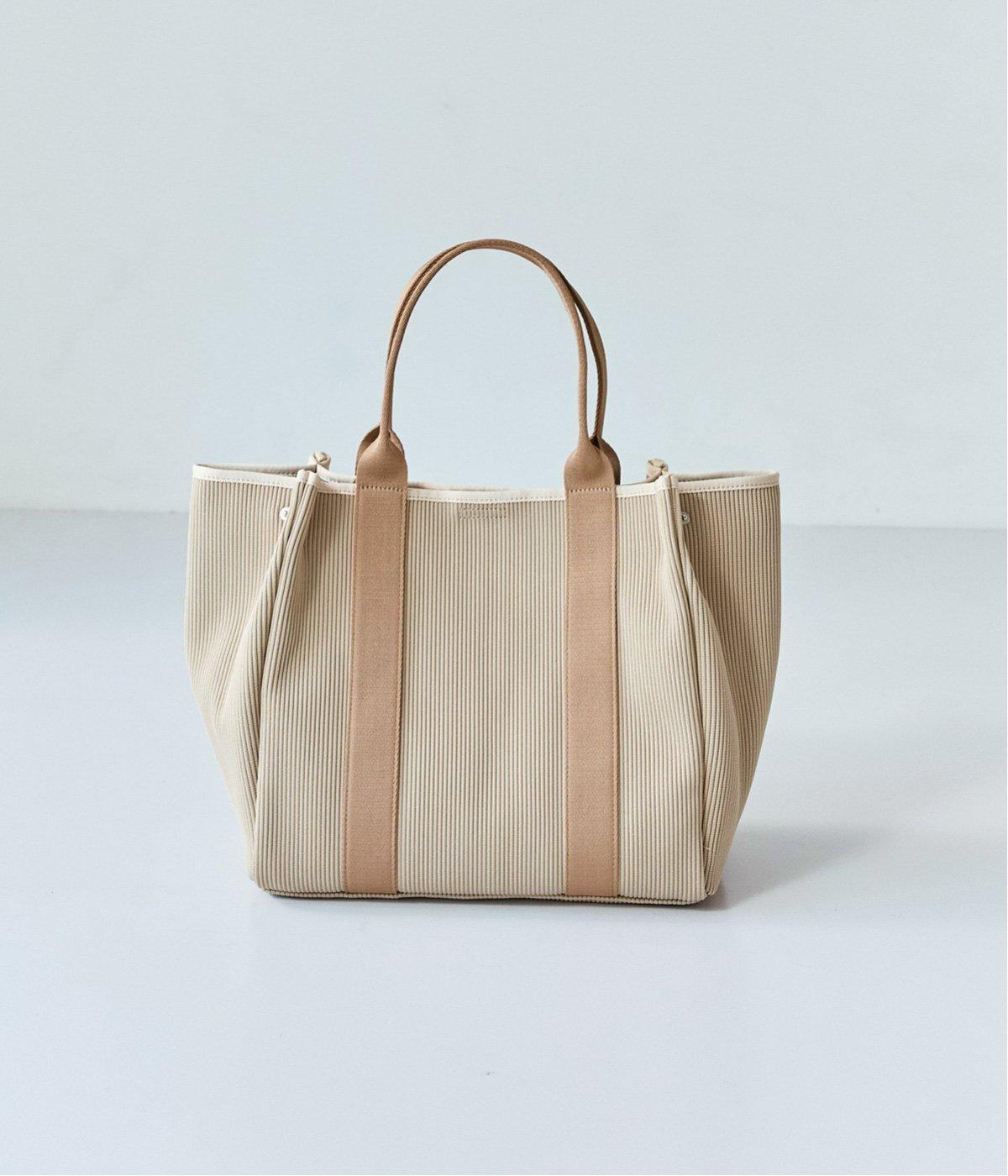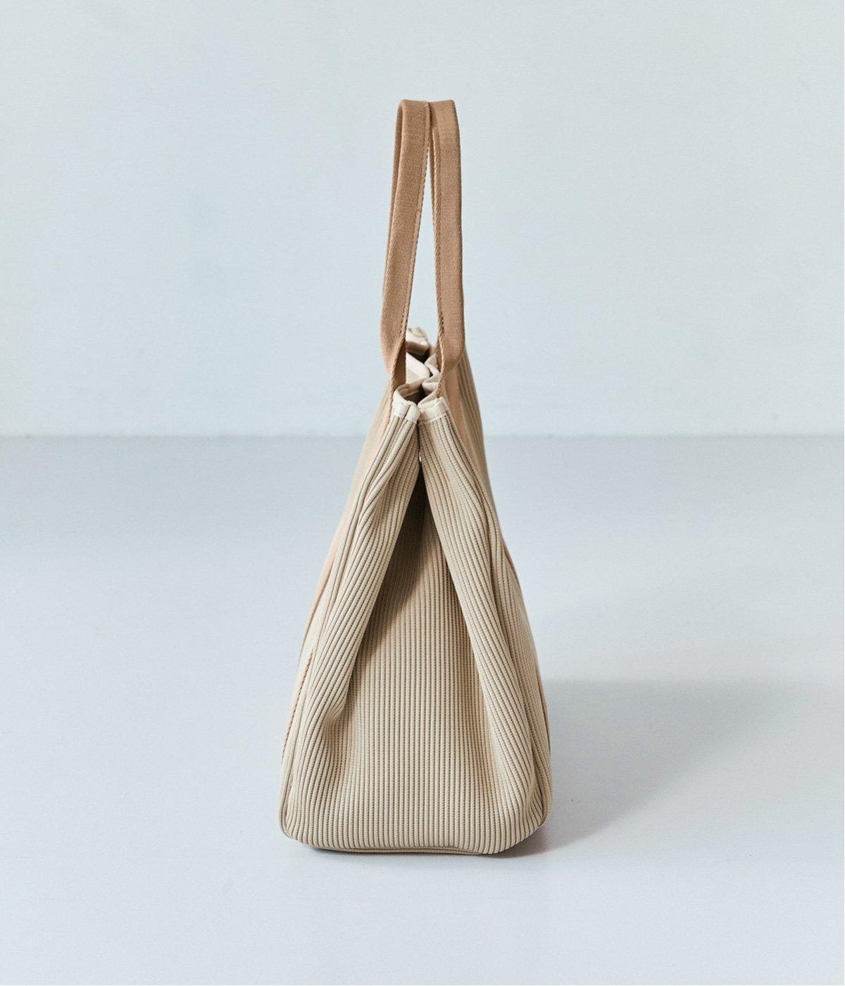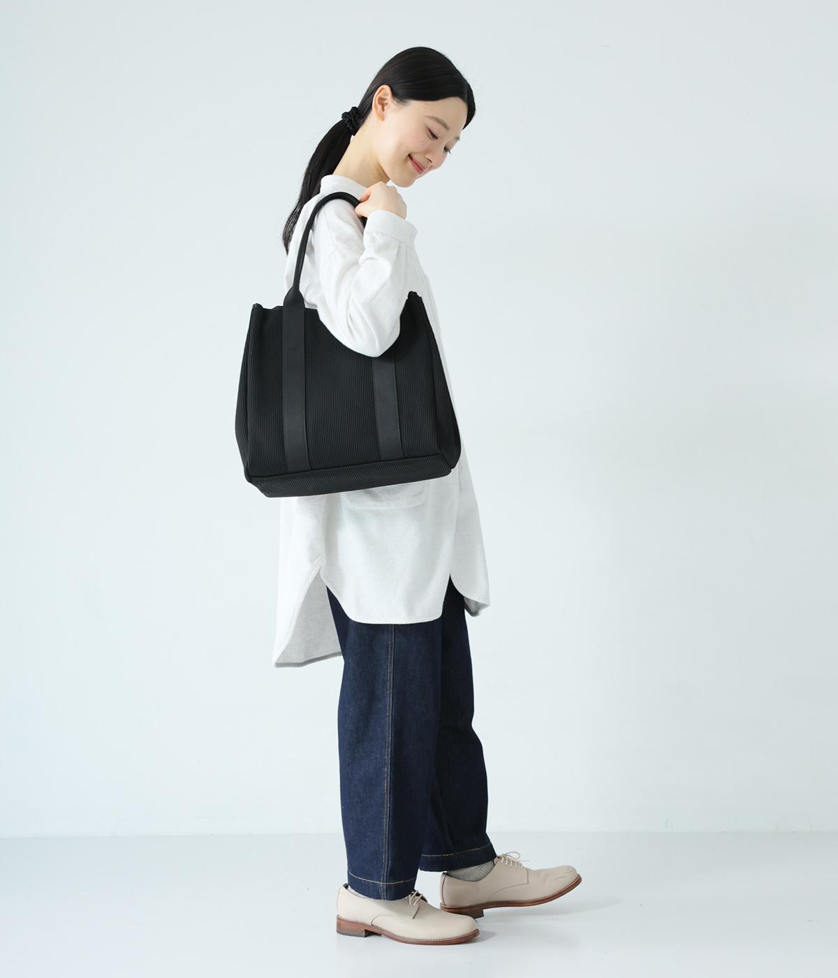 縦方向の畝が特徴のニットジャカードを使用しています。荷物をたくさん入れてもシルエットをきれいにキープしてくれる、しっかりとした厚みとハリ感が魅力です。