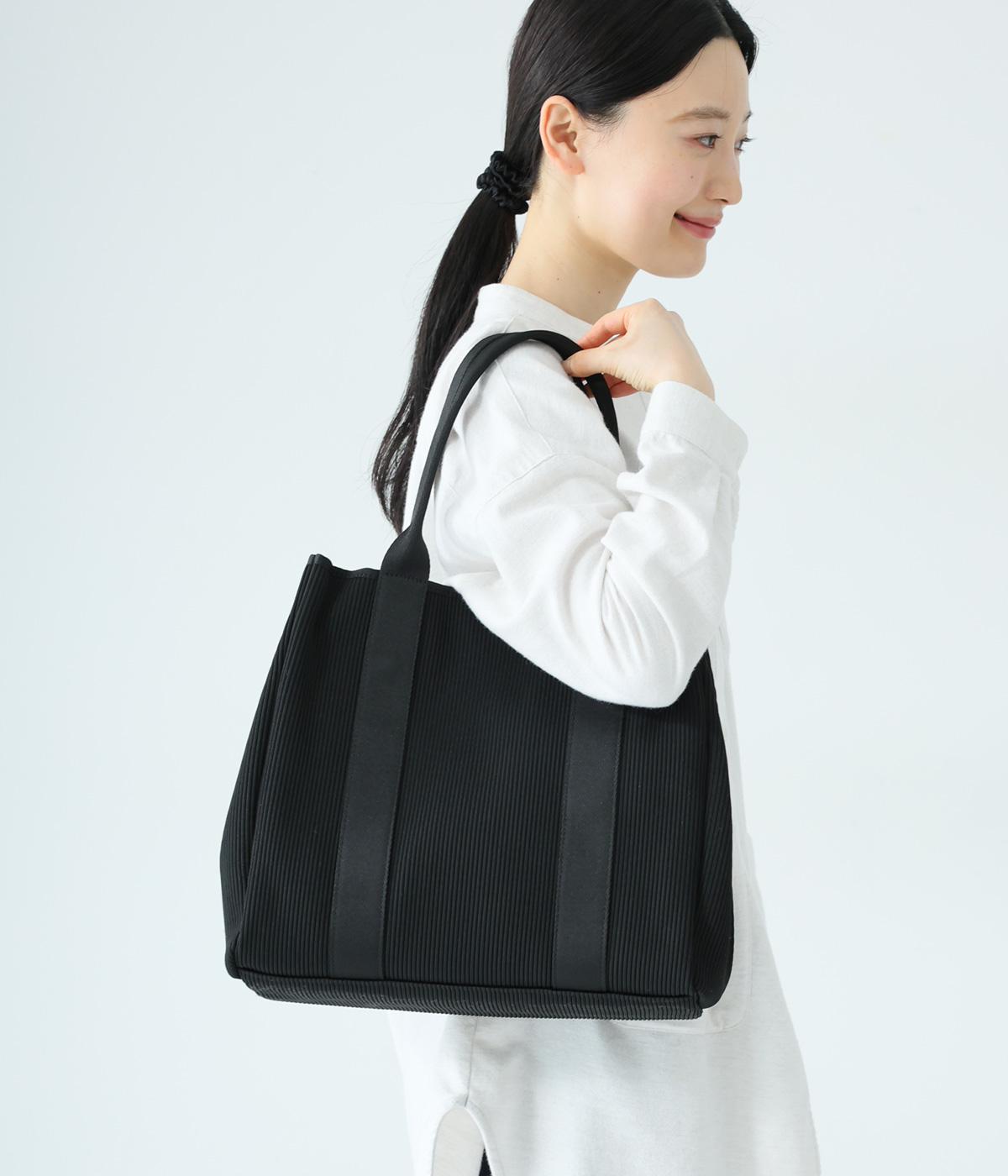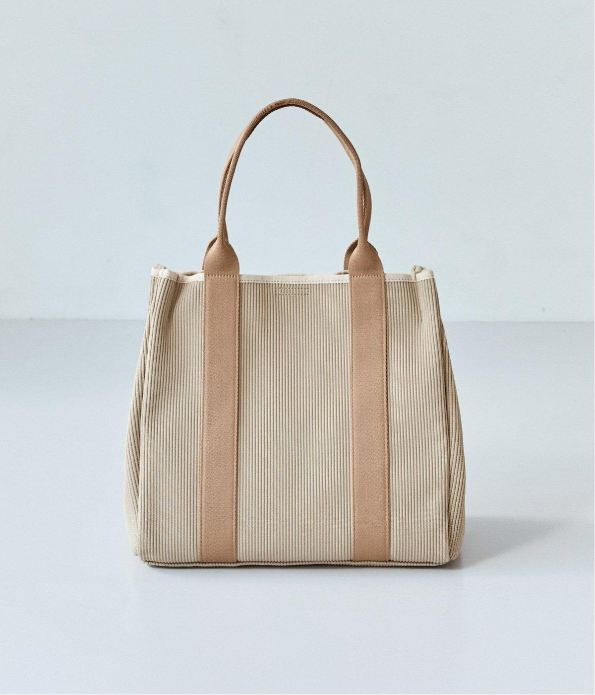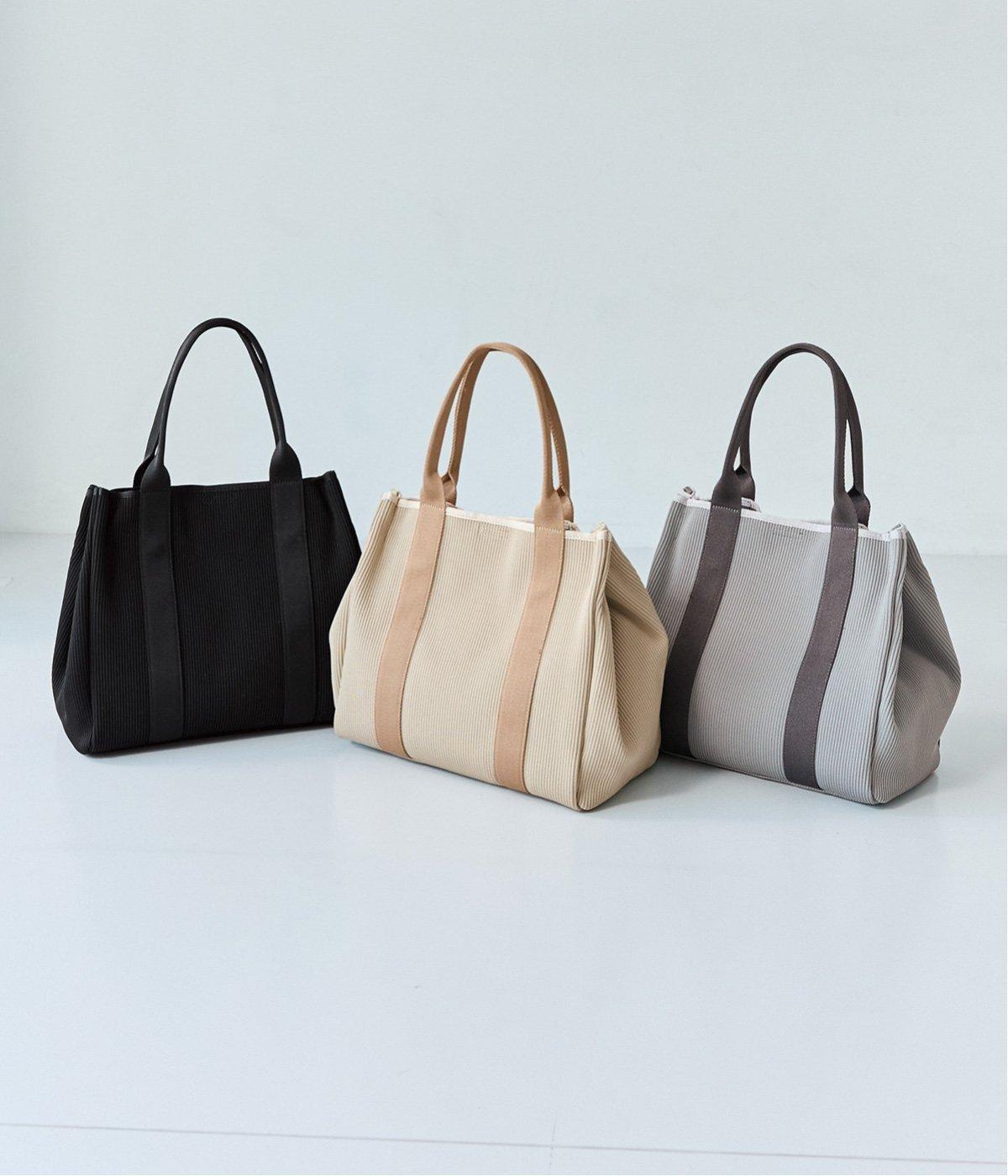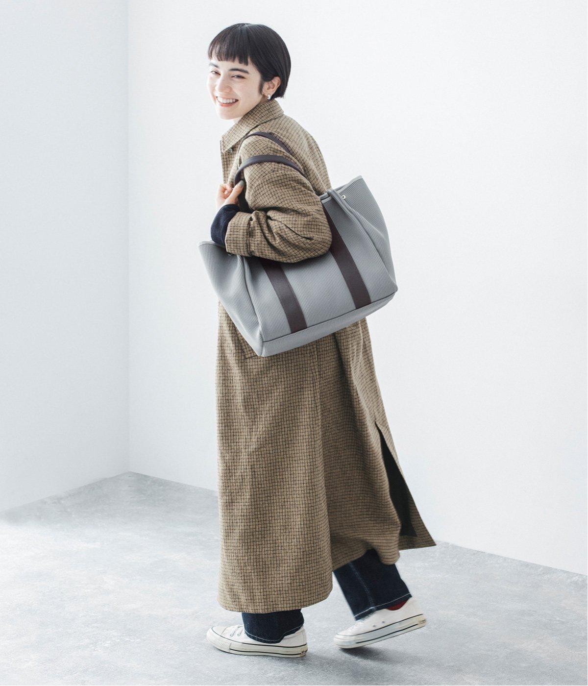 縦方向の畝が特徴のニットジャカードを使用しています。荷物をたくさん入れてもシルエットをきれいにキープしてくれる、しっかりとした厚みとハリ感が魅力です。